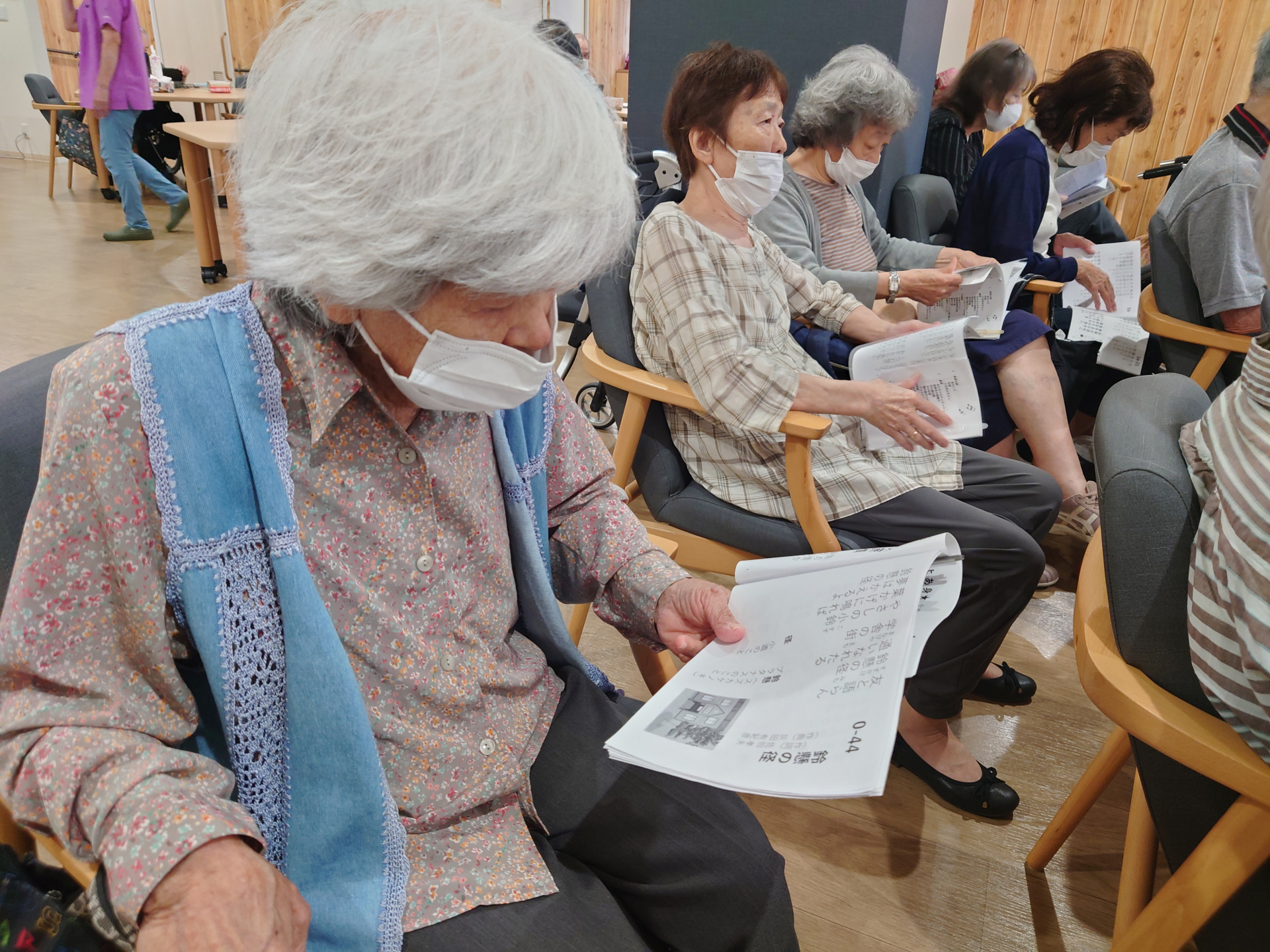 おもちゃのマーチ、てんとう虫のサンバ、時の流れに身をまかせなどの名曲ぞろいでみなさんの合唱