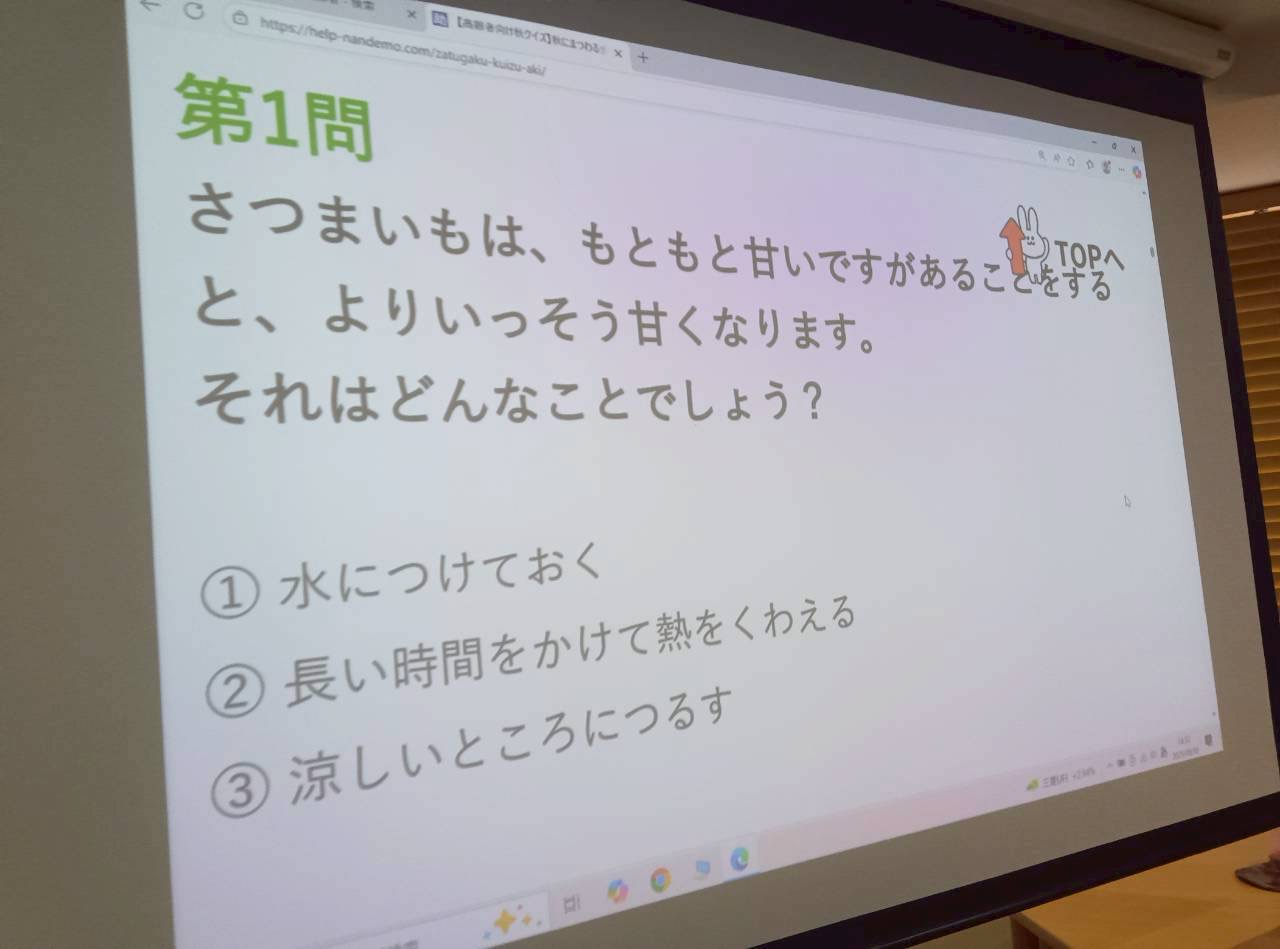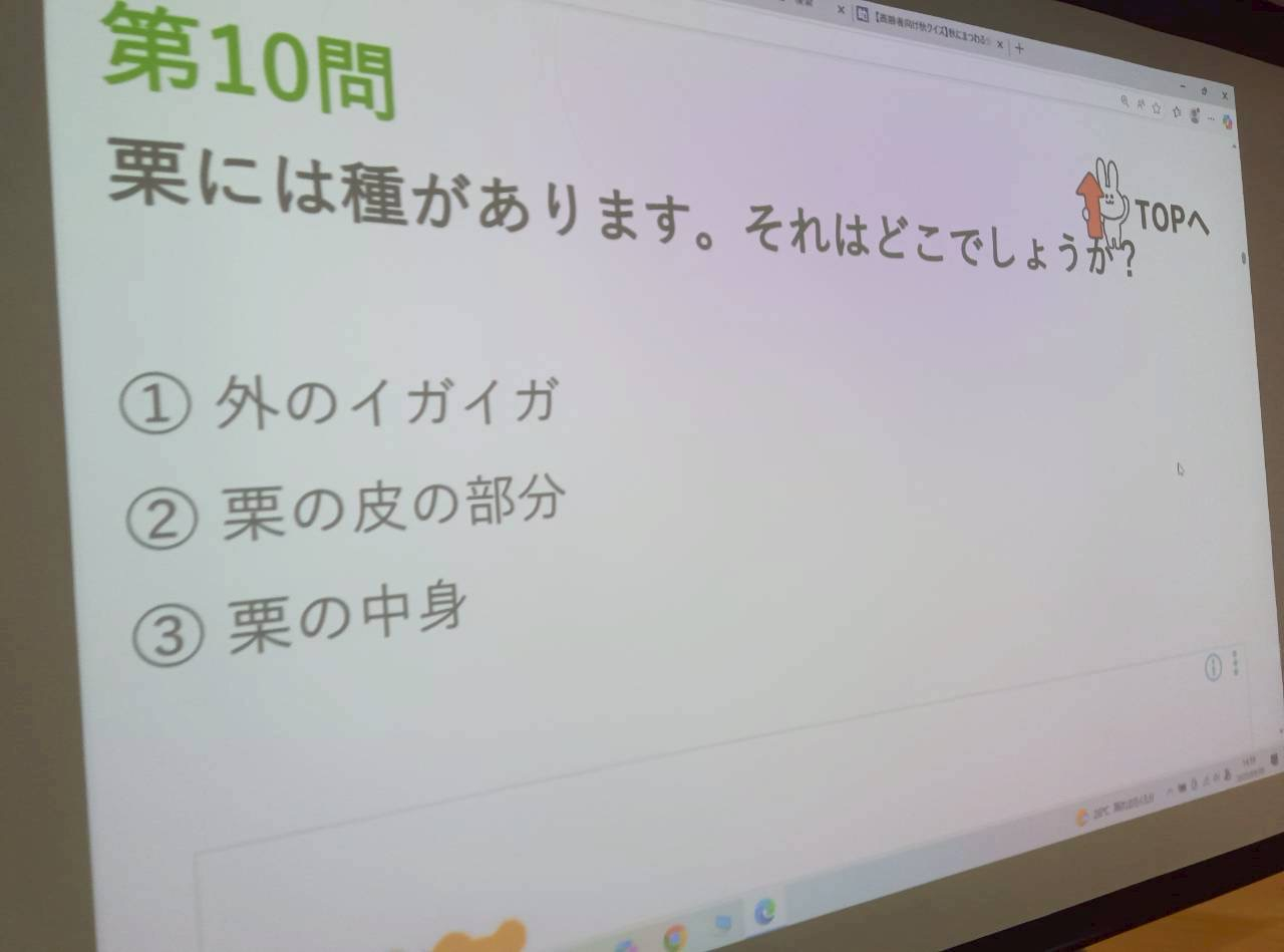 こんな感じで、他にもさんまやナス、柿、松茸などに関する秋の美味しい食材についての雑学をクイズで勉強しました☆