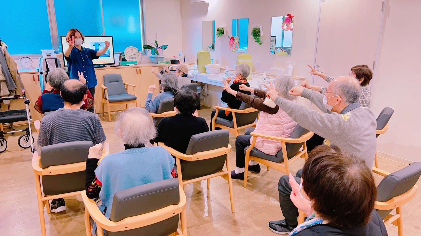 さて今日は、スクリーンレク・オンラインレク・体操ブース・屋外歩行訓練・タブレット(ゲームや音楽鑑賞)と5つの選択肢をご用意♪