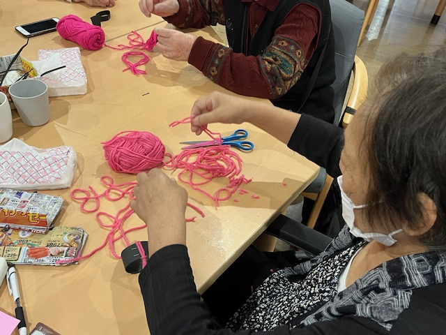 そこに好きな色の毛糸を切って巻き付けていきます!