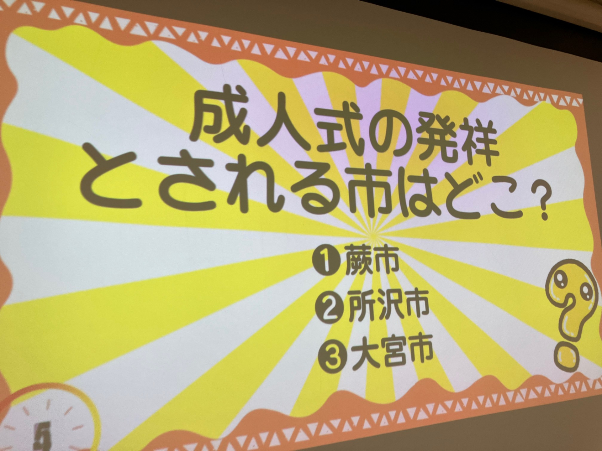 「う~ん蕨市ではないかなぁ」と皆さまの意見は大宮市と所沢市に分かれました。