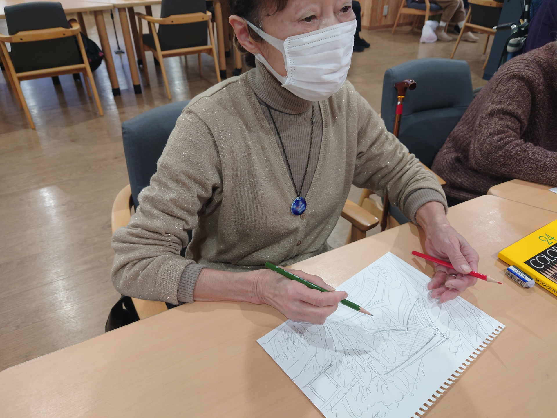 午前中、塗り絵を一生懸命行われていた方をお誘いしたら画用紙を配った途端に書き始められ時間いっぱい絵画に没頭されたテレビ前の皆さん!