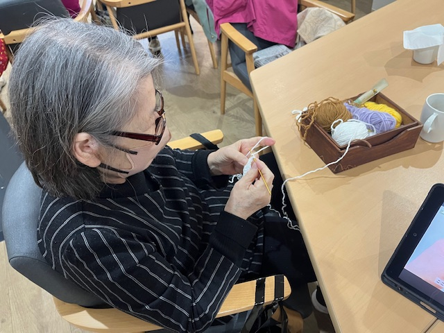編み物ブームは冷めやらぬ中本日もミニバックやマフラーのパーツを作る方が!