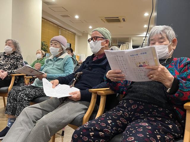 「雪椿」「雪国」といった冬らしい曲を歌いました♪