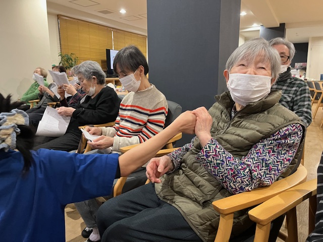 職員と手を取ってリズムに乗ったりと!