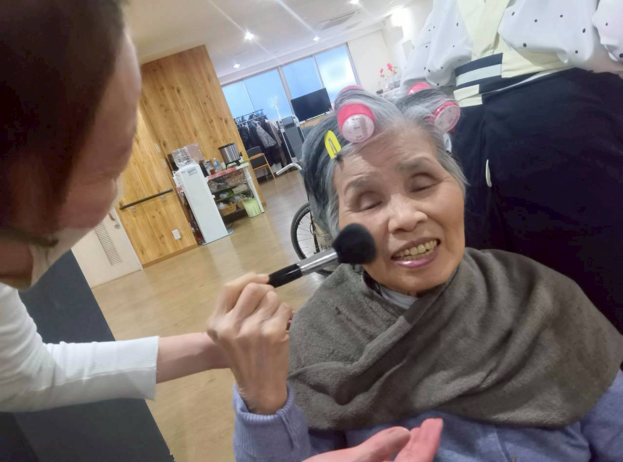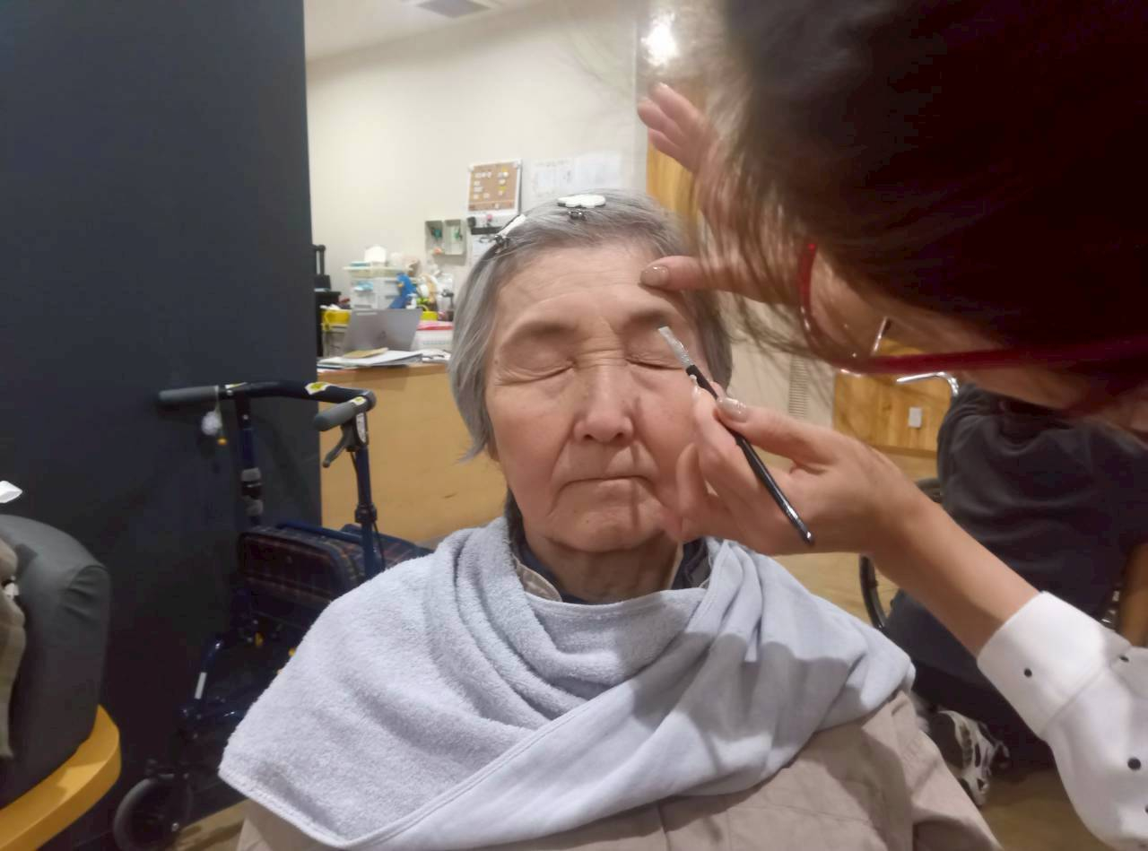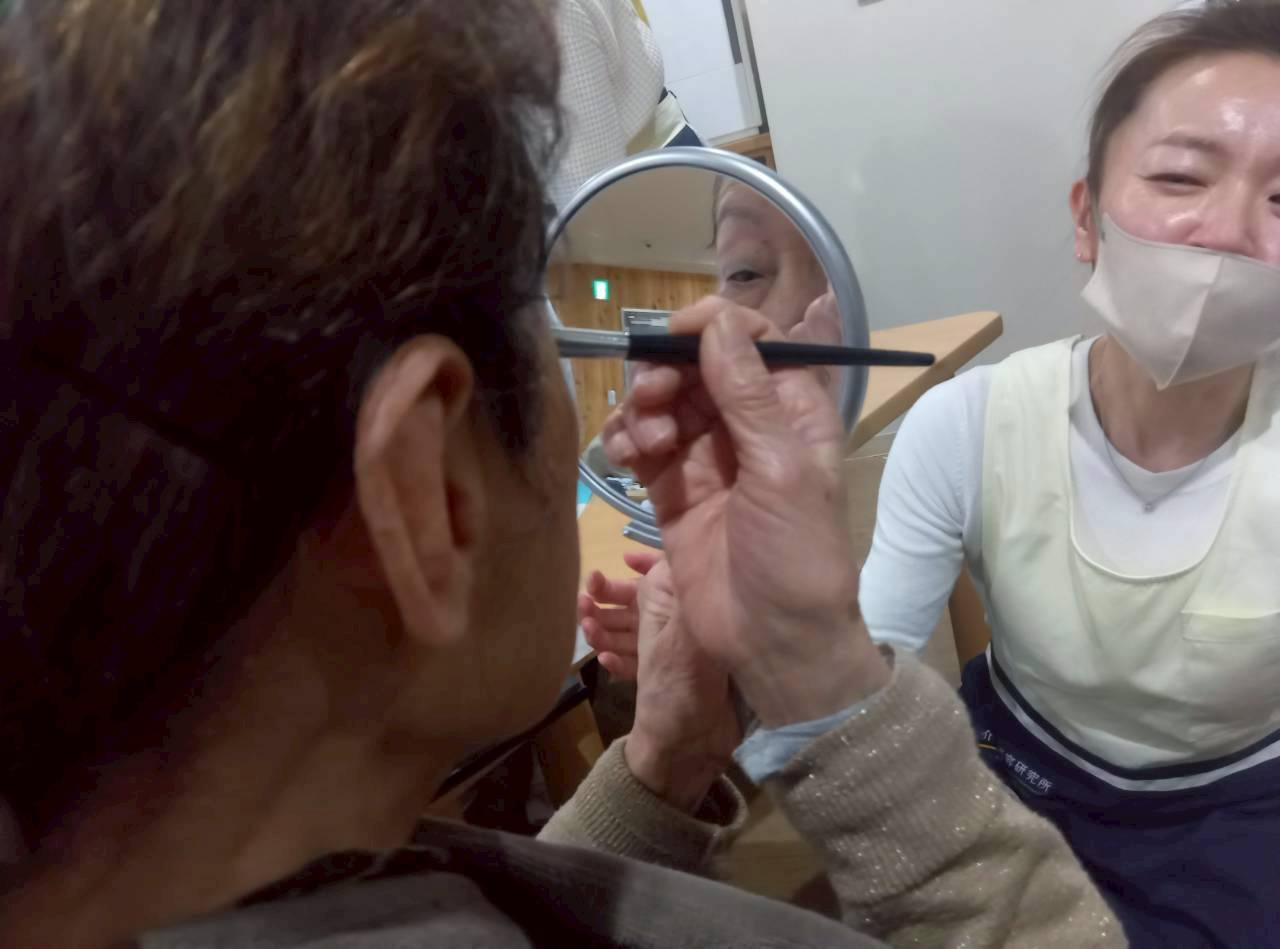 また、お手伝いしてもらいながら、眉を描いてみたり、チークを塗ってみたりご自分でも挑戦されていらっしゃいます(*^-^*)