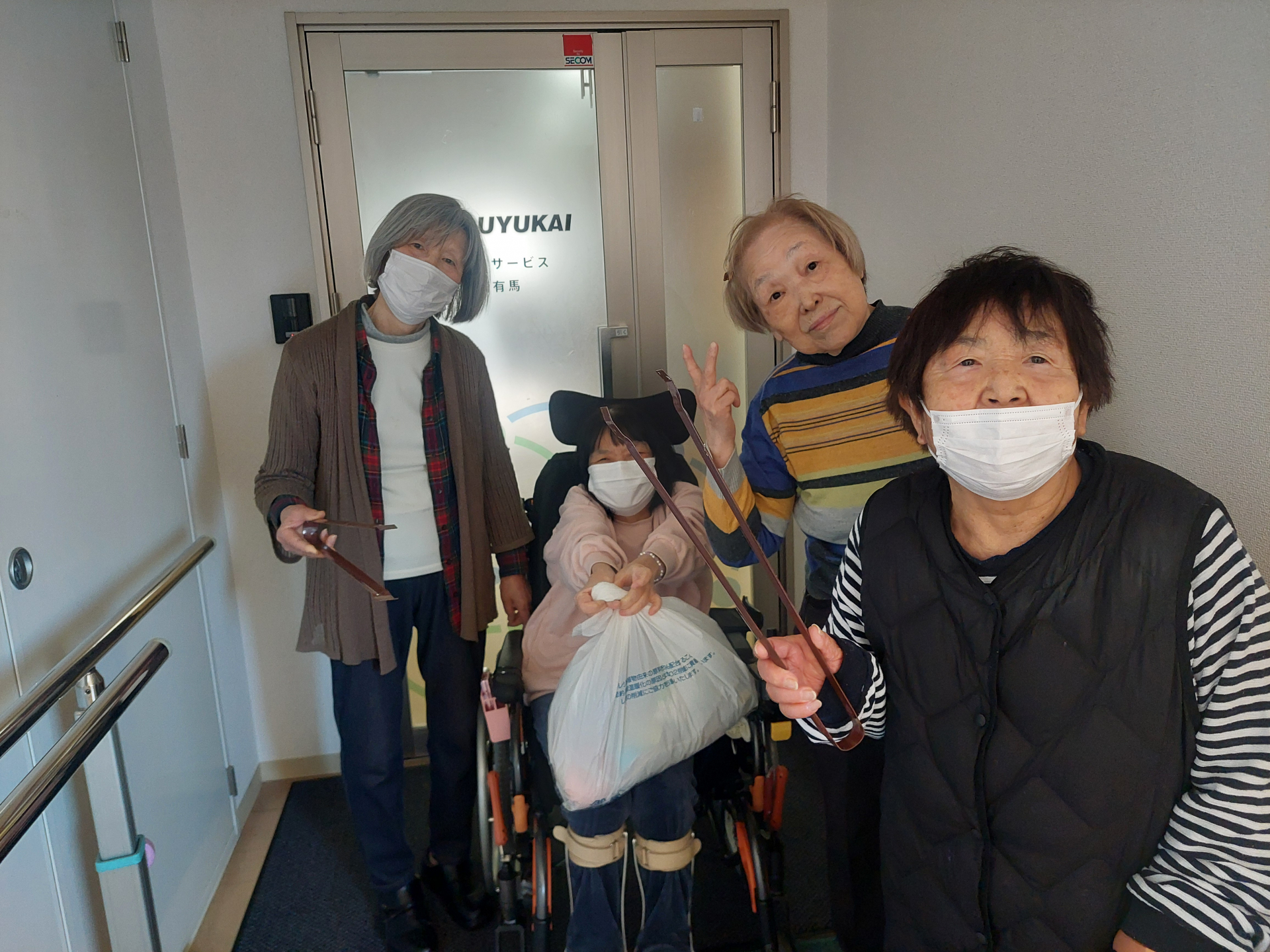 いつもは屋外歩行訓練としてデイの周りを歩いていますが、今日はひと味違います。