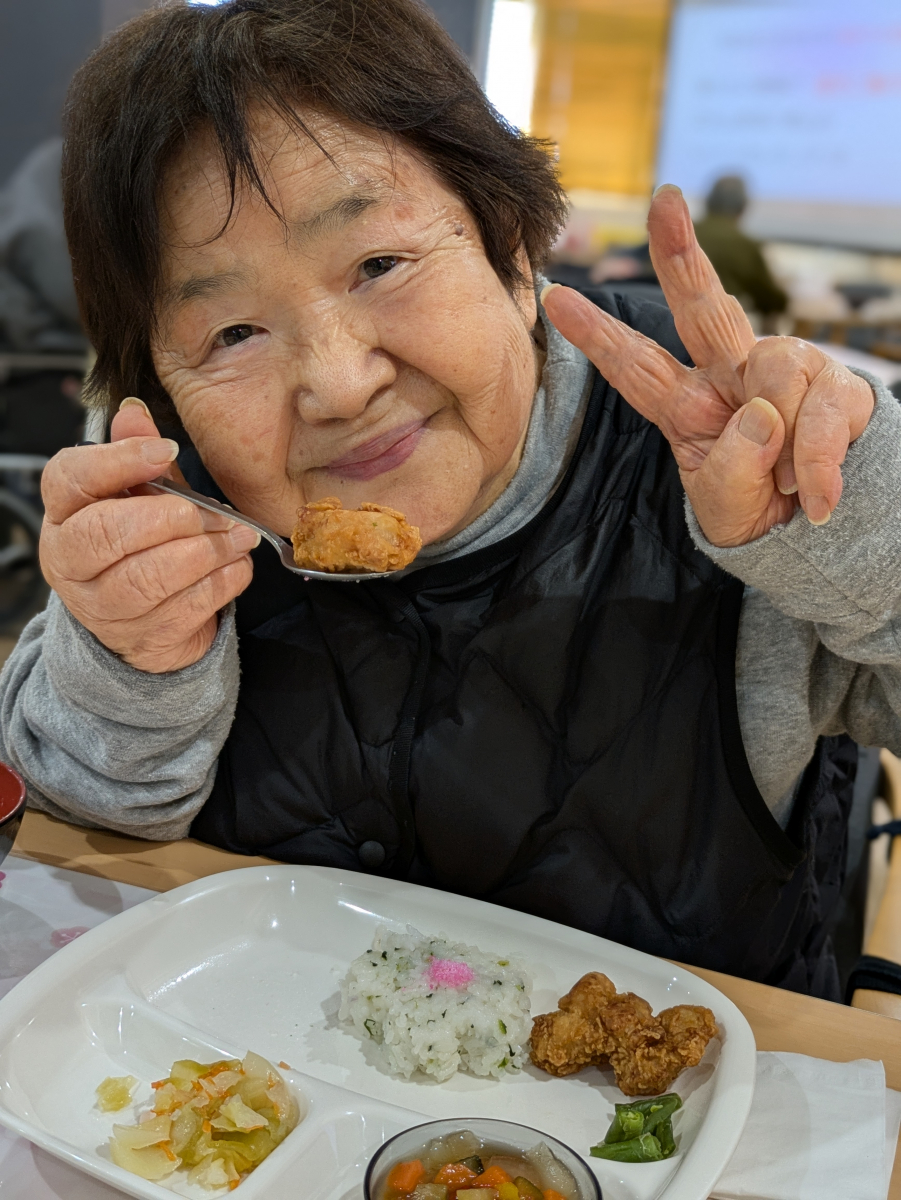 「おいしい」「味もちょうどいい」と菜っ葉のごはん、好評でした♪