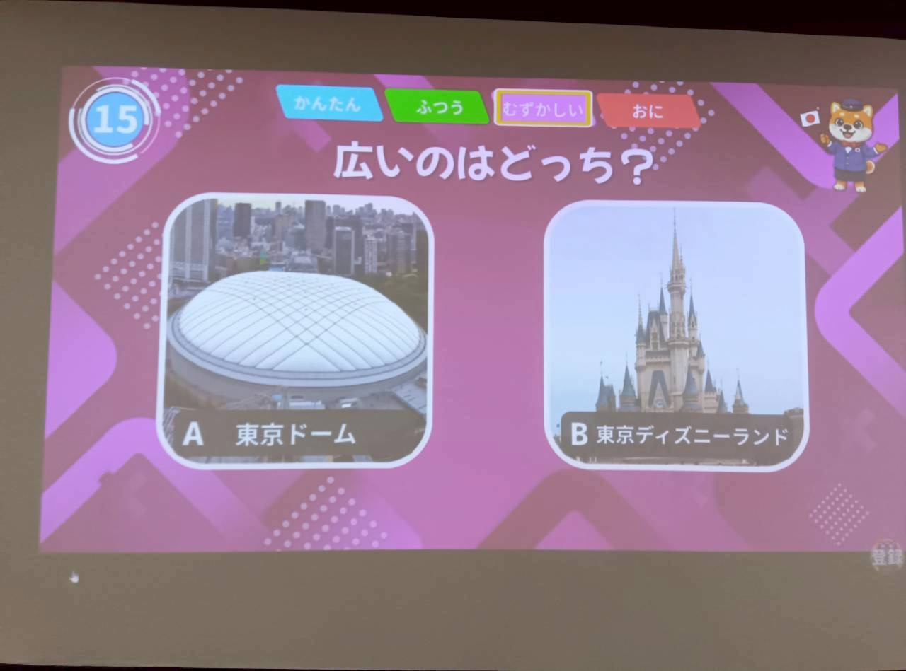 広いのはどっち?ということで、『ディズニーランド!!』とみなさん。正解です☆
