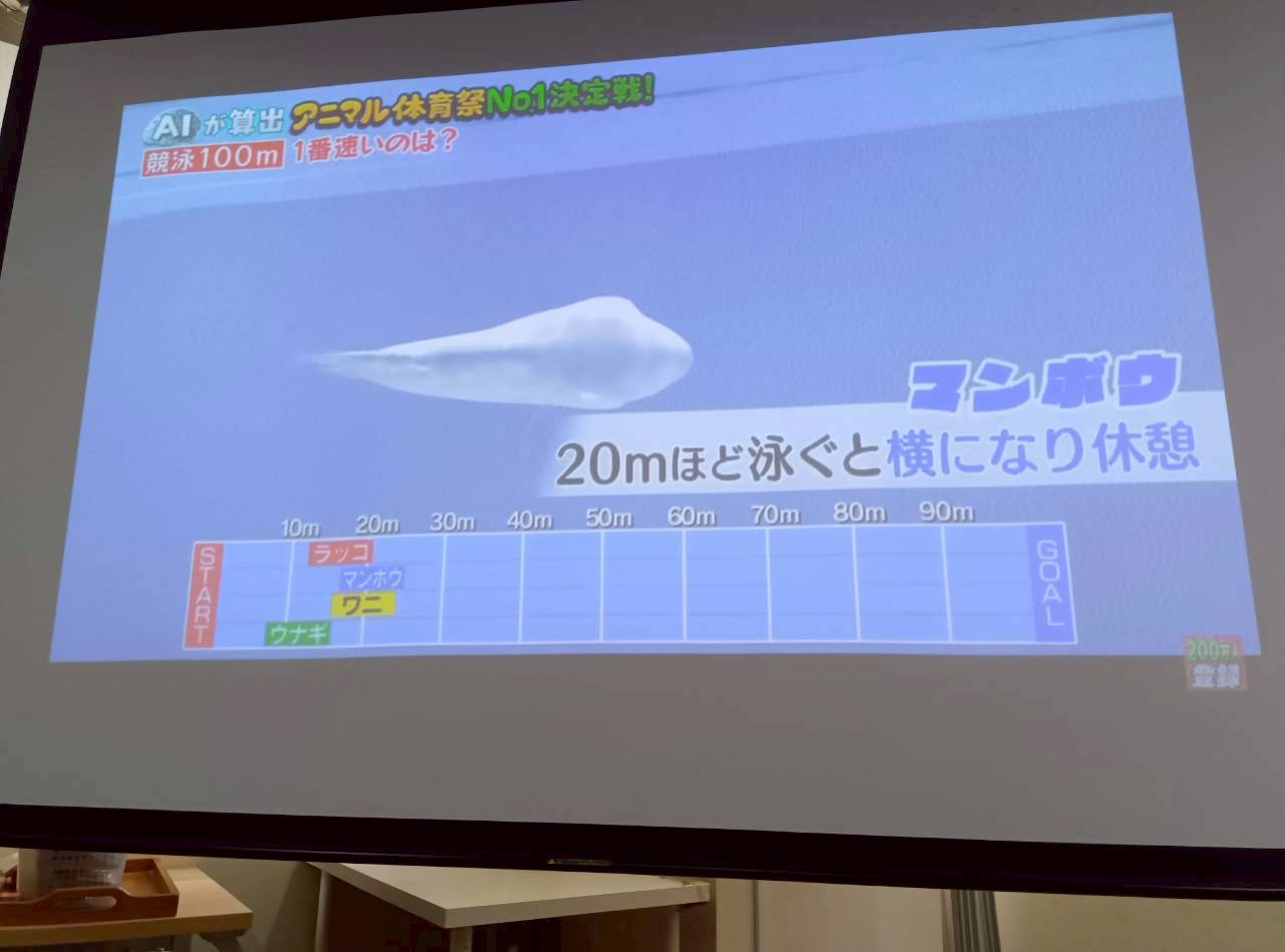 体長が一番大きいので、マンボウが一番早いと予想したみなさん。