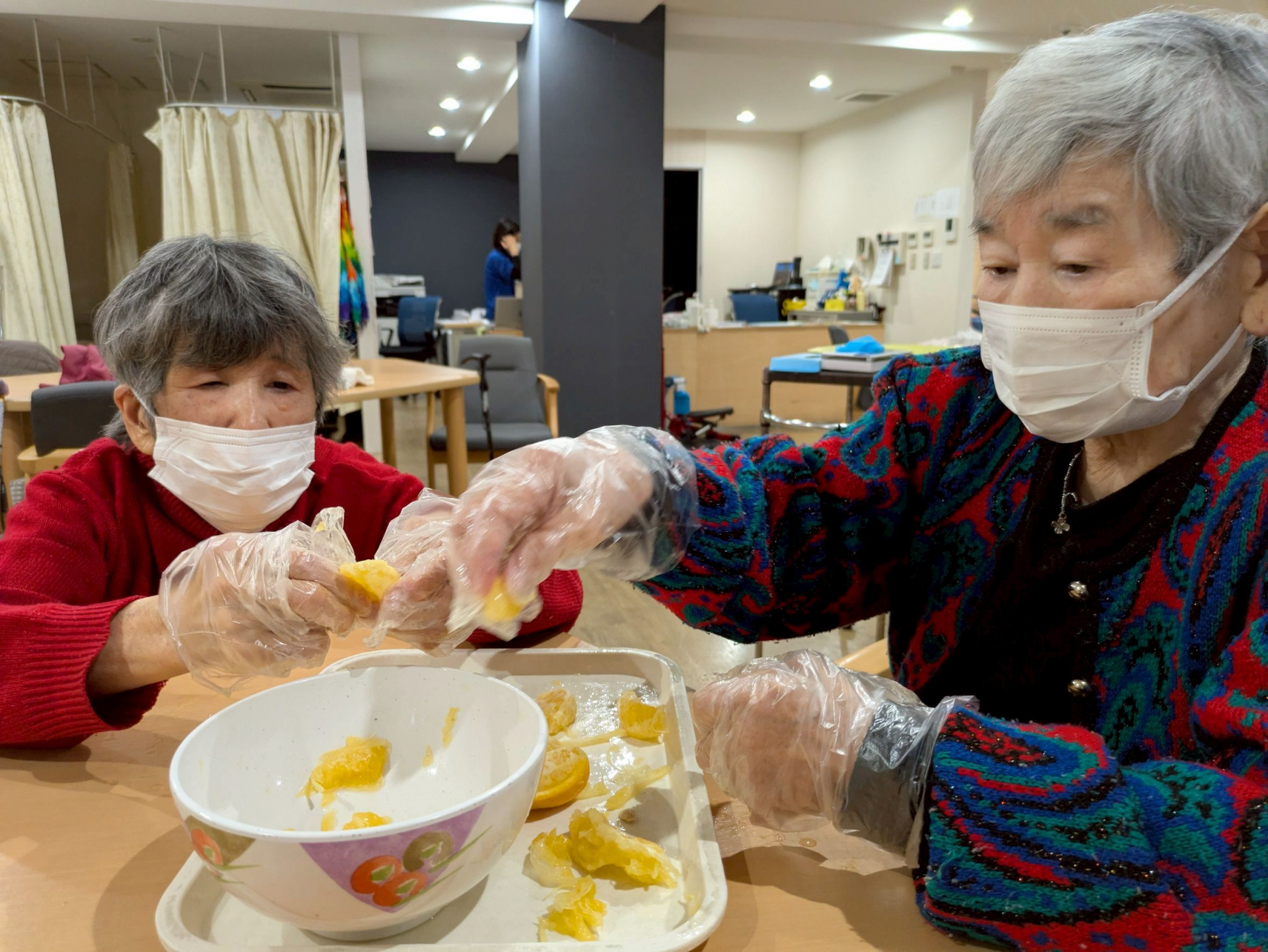 先週はいただいた八朔を使って、みなさんで協力して「はっさくわらび餅」を作りました♪