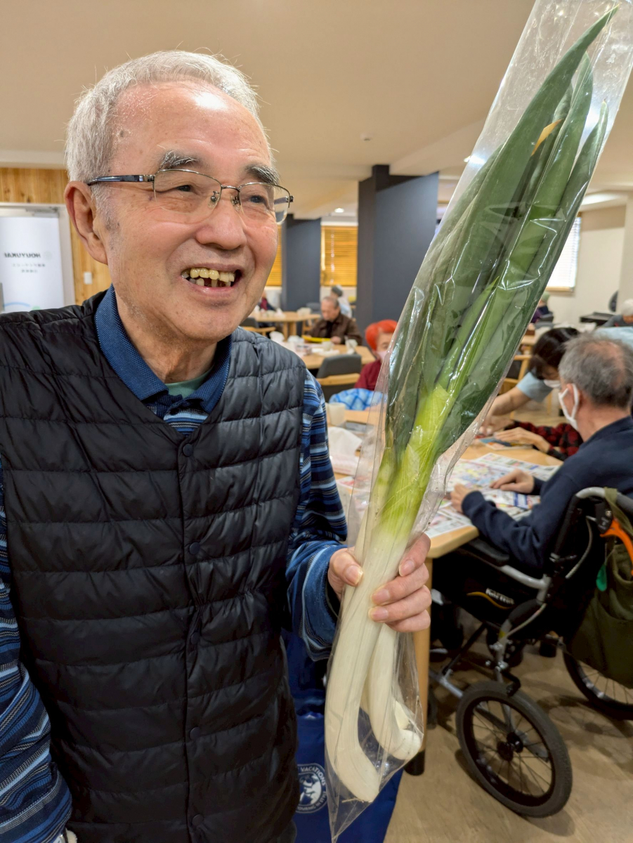 みんなに「すごいいいネギ!!」「ありがとうございます」と言われうれしそうでとてもいい笑顔♡