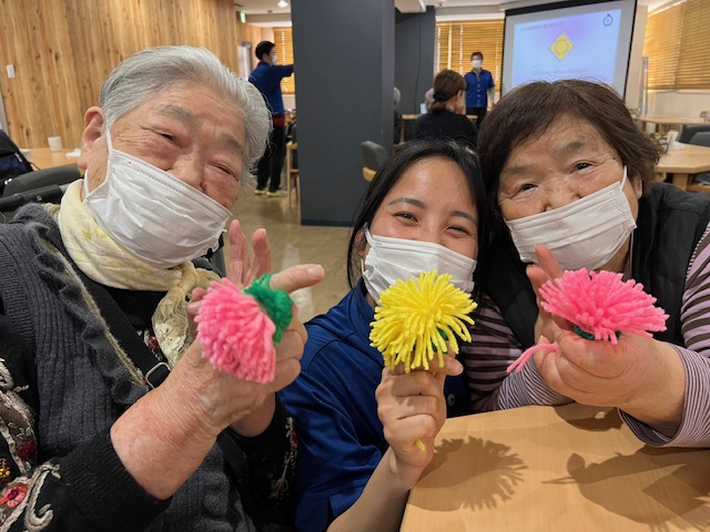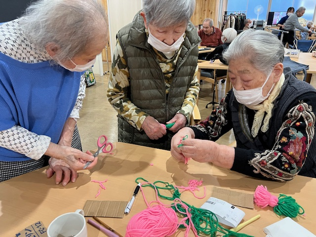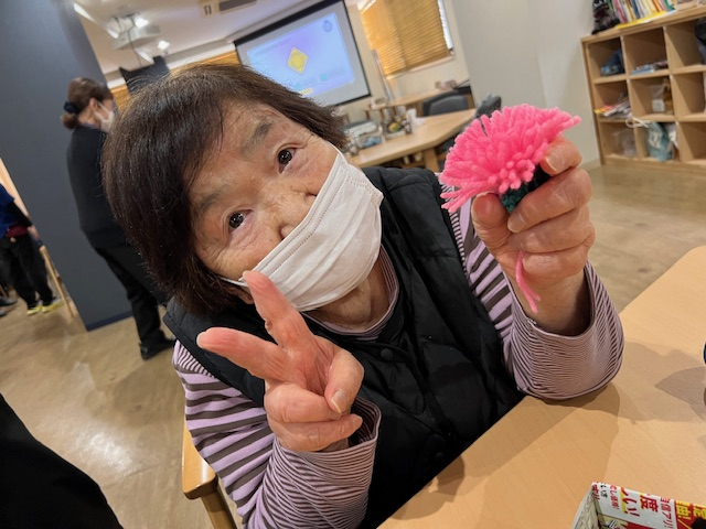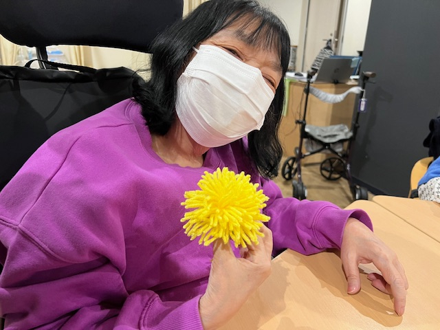 今日、有馬デイの午後のプログラムは手芸の花を作りました。