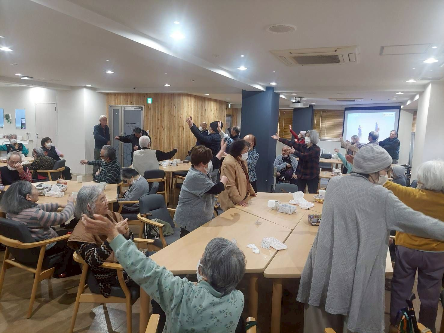 大勢で行うラジオ体操、気持ちいいですね~♪