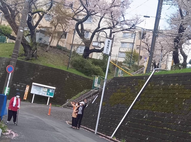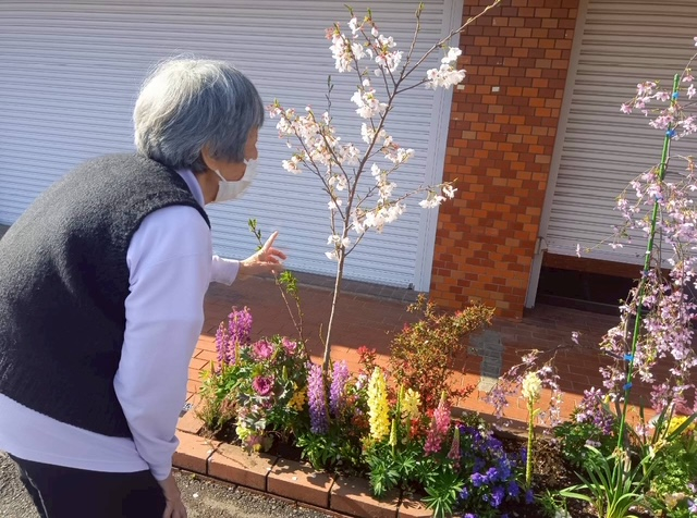 そのまま先程の団子屋さんを横目に、デイの近くまで来ると、店先に植えてある桜の木を発見!