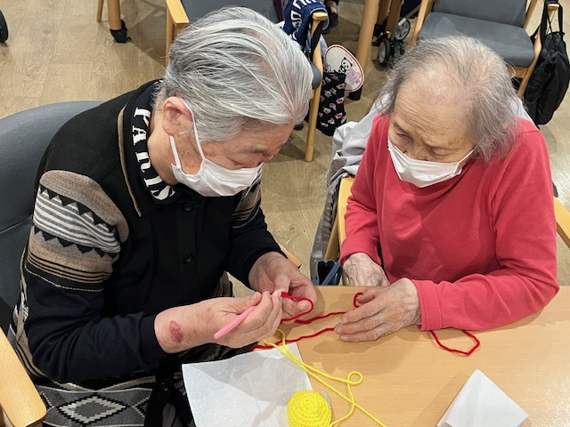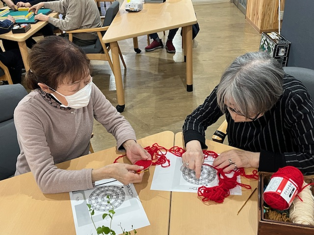 編み物に慣れた方はお隣さんに教えておりました!