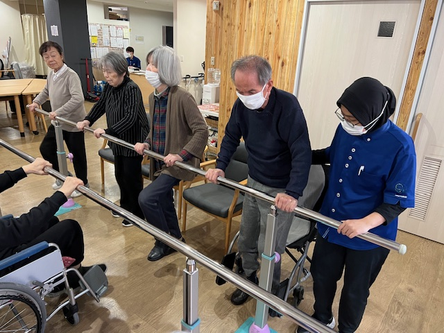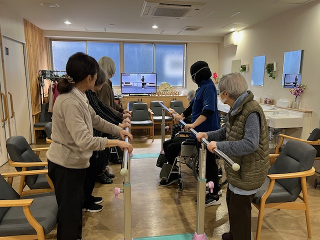 最初はYouTubeの動画を見ながら皆さんと一緒に取り組んでいましたが、後半はジハン職員のオリジナル体操!