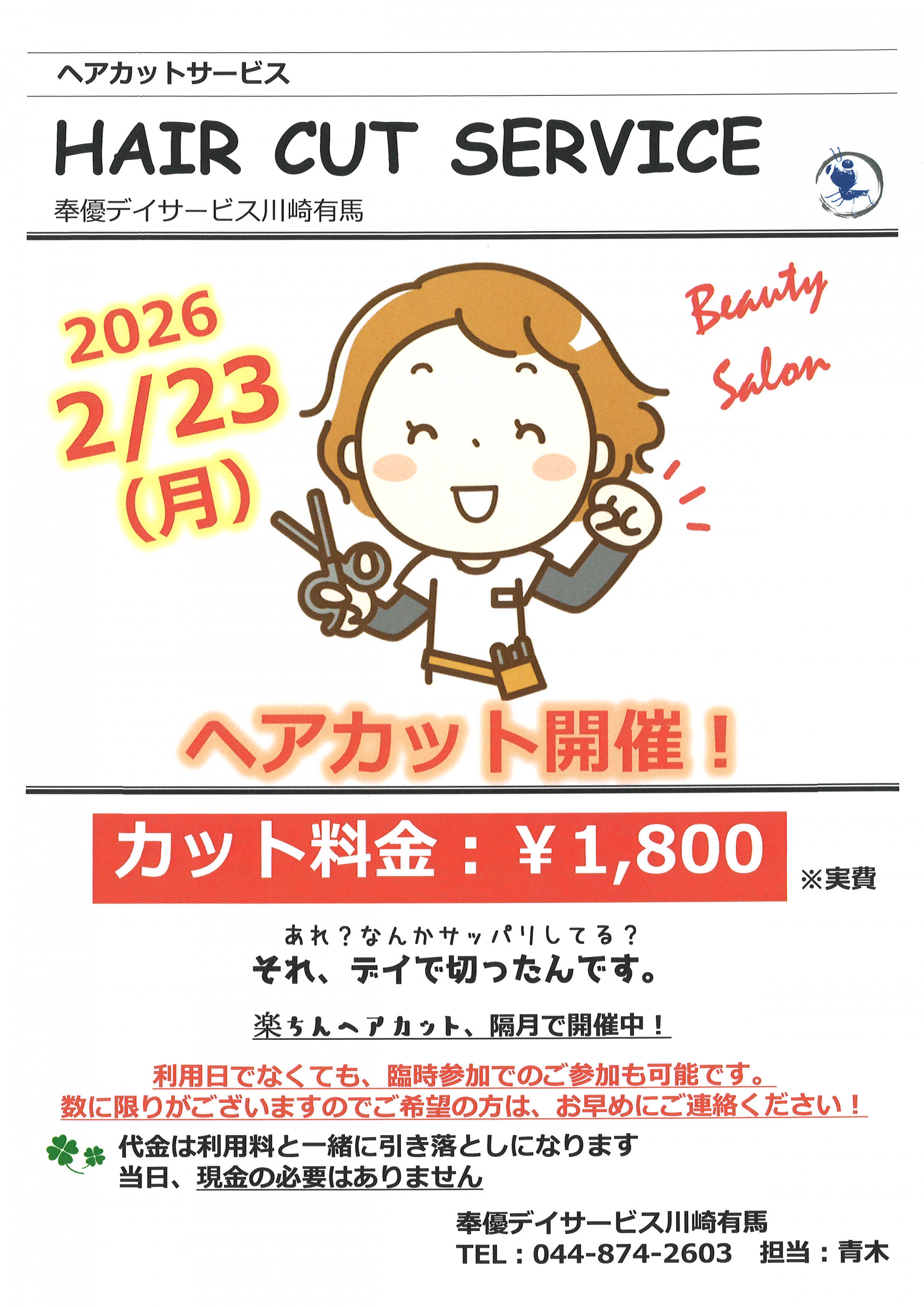 【川崎有馬デイ】ヘアカットのご案内