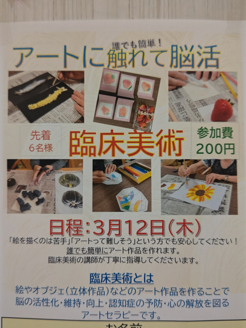 2026.03.26 NEW 【霧デイ】筆の感触を楽しみながら。。書道クラブ 活動報告 2026.03.25 【霧デイ】パステルアート 指先の機能訓練 活動報告 2026.03.24 「霧が丘デイサービス」月一度の曼荼羅クラブ 活動報告 2026.03.24 【霧デイ】屋外歩行訓練 お散歩日和 活動報告 2026.03.21 [霧が丘デイサービス」桜の壁面飾り 活動報告 2026.03.20 「霧が丘デイサービス」避難訓練 活動報告 2026.03.18 【霧デイ】可愛い訪問者 活動報告 2026.03.17 「霧が丘デイサービス」編み物クラブ 活動報告 2026.03.16 「霧が丘デイサービス」ホワイトデーおやつ作り 活動報告 2026.03.14 【霧デイ】暖かな陽を感じながら。。スクラッチアート 活動報告 2026.03.12 【霧デイ】月に一度のアート体験 臨床美術 活動報告 2026.03.11 【霧デイ】午前は。。手先・全身・頭の体操 活動報告 2026.03.10 「霧が丘デイサービス」お茶会クラブ~毎月のお楽しみ~ 活動報告 2026.03.09 「霧が丘デイサービス」今月の臨床美術ご紹介 活動報告 2026.03.06 「霧が丘デイサービス」社内研修INマイホームはるみ 活動報告 1 2 3 … 36