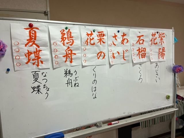 今回は「夏蝶」「鵜舟」「栗の花」「あじさい」「石榴(ざくろ)」「紫陽花」