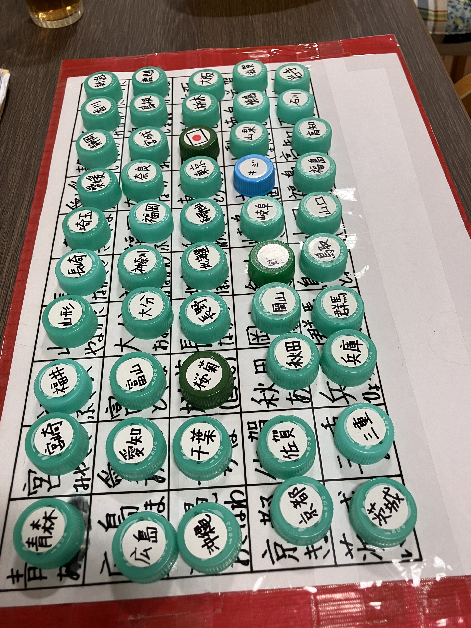 都道府県の書かれた盤に、同じ都道府県の書いてあるキャップを置きます!