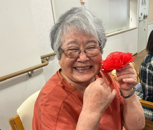 「お花の先生はこっち!」「どうするの?」と利用者さん同士で