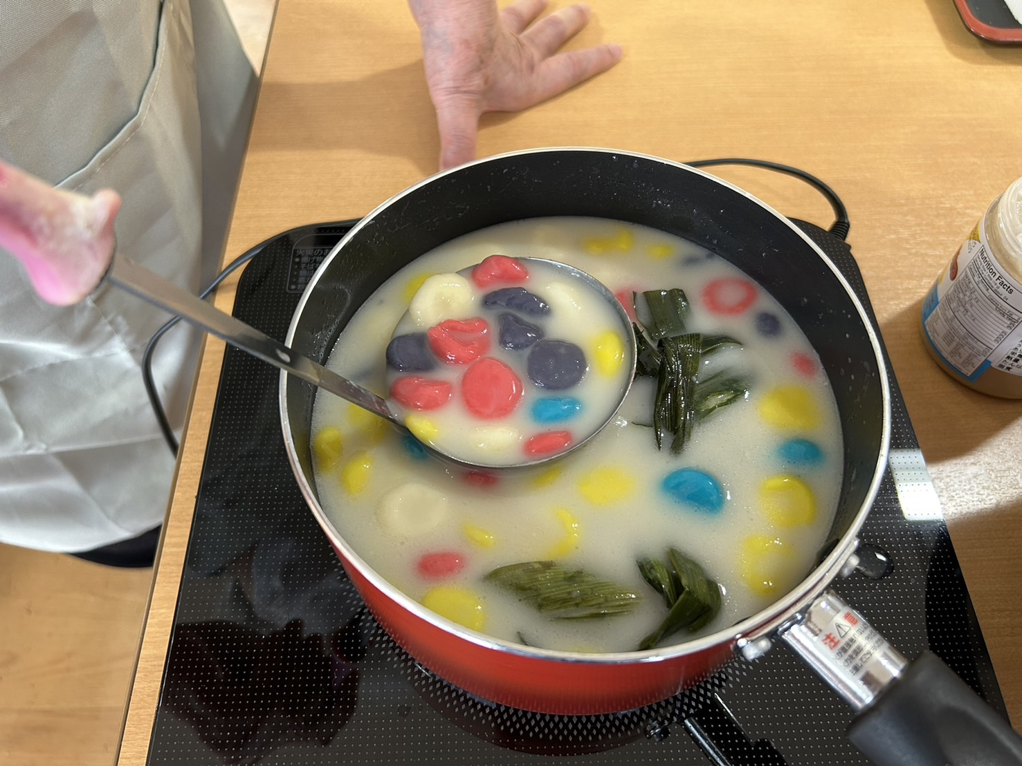 本日は職員のバイファーンさんの故郷「タイ」のおやつ『ブアローイ』を作った報告です!