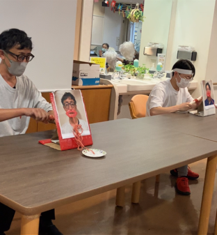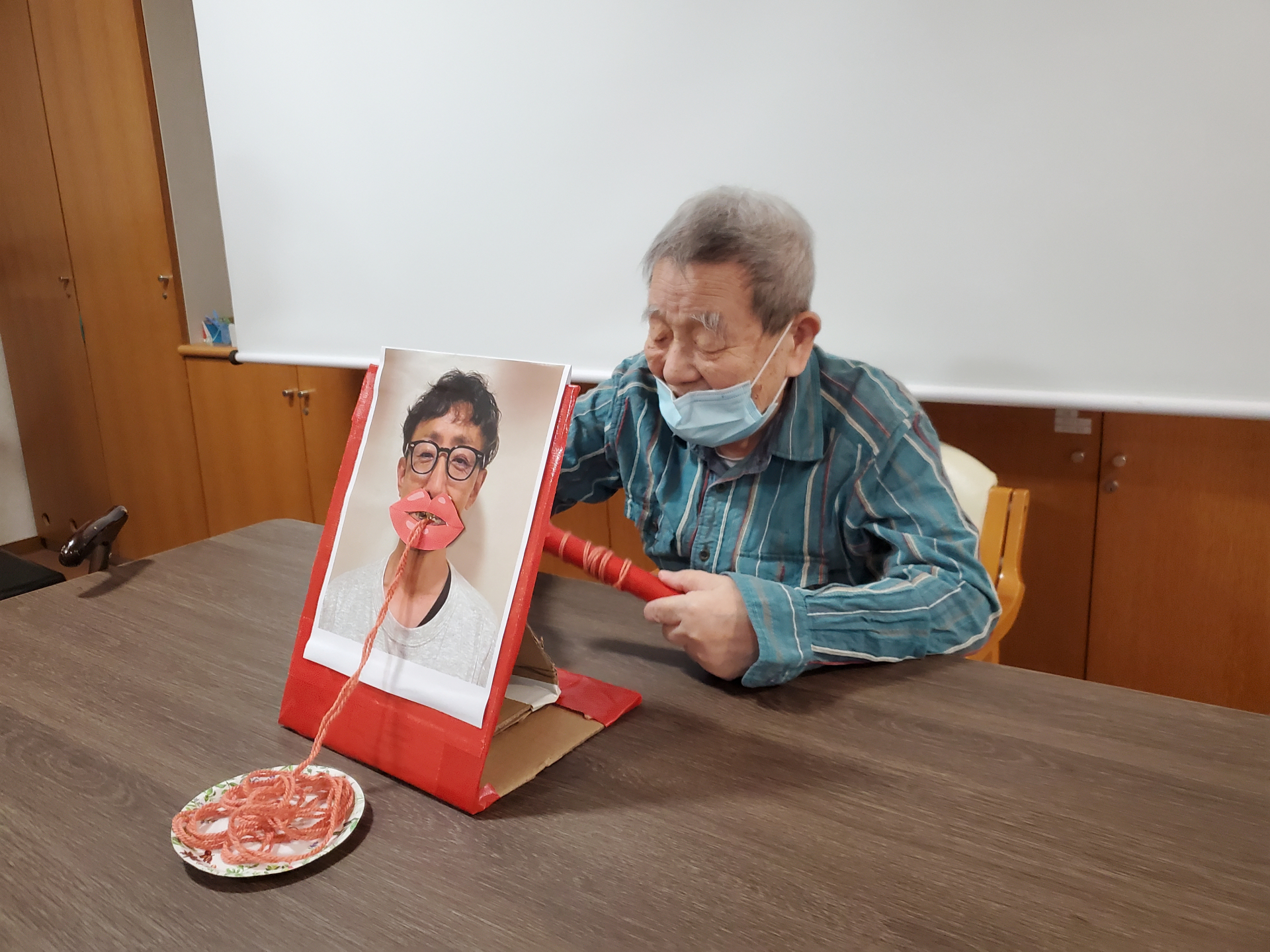 今回は霧デイの責任者鈴木さんと白組団長三森さんの写真を使用して、パスタを食べてもらいました😋