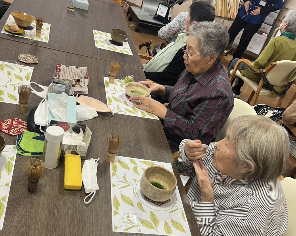 お茶を点てる経験のある方がいらっしゃるため、職員も時折教わりながら( *´艸`)