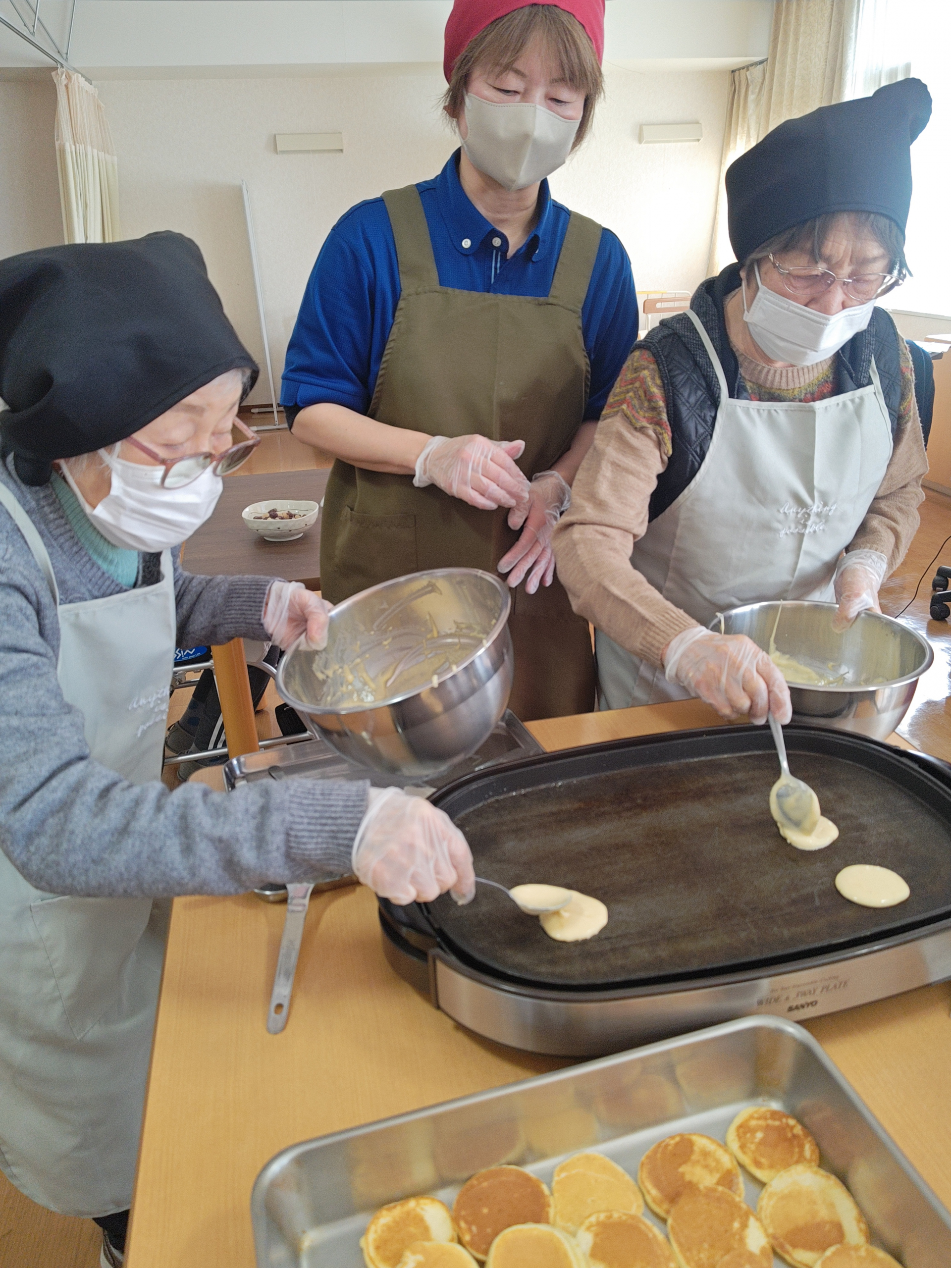 今回は、皆さまで協力して「節分風どら焼き」を作りました。