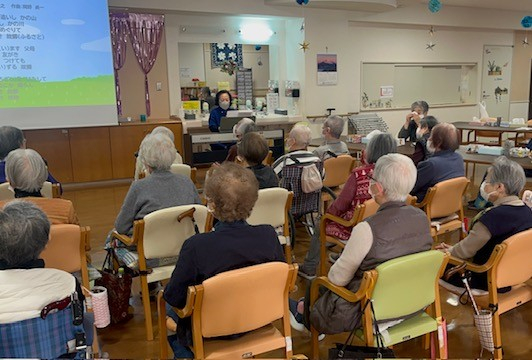 生演奏のピアノに合わせて、季節の歌や懐かしい歌を皆さまで歌い、会場はとても和やかな雰囲気に包まれました。