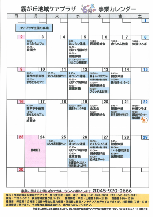 2024.12.02 【横浜市霧が丘地域ケアプラザ】まちともカフェで体操♪ 活動報告 2024.11.29 【横浜市霧が丘地域ケアプラザ】ぬりえアートを開催しました♪ 活動報告 2024.11.28 【横浜市霧が丘地域ケアプラザ】クリスマス工作と親子リトミックを行いました♪ 活動報告 2024.11.26 【横浜市霧が丘地域ケアプラザ】クリスマスツリー♪ ニュース 2024.11.25 【横浜市霧が丘地域ケアプラザ】消防避難訓練を行いました! 活動報告 2024.11.22 【横浜市霧が丘地域ケアプラザ】12月事業カレンダーができました! 活動報告 2024.11.21 【横浜市霧が丘地域ケアプラザ】虹~♪ ニュース 2024.11.21 【霧が丘地域ケアプラザ】親子deヨガクラス受付中♪ お知らせ 2024.11.19 【横浜市霧が丘地域ケアプラザ】霧が丘デイサービスで書道教室♪ 活動報告 2024.11.16 【横浜市霧が丘地域ケアプラザ】ムーブメントクラスを開催しました♪ 活動報告 2024.11.15 【横浜市霧が丘地域ケアプラザ】やっとできた!念願のXジャイロ♪ 活動報告 2024.11.14 【横浜市霧が丘地域ケアプラザ】霧サポ手芸班の活動日! 活動報告 2024.11.13 【霧が丘地域ケアプラザ】よこはまシニアボランティアポイント登録研修会受付中! お知らせ 2024.11.12 【横浜市霧が丘地域ケアプラザ】クラフトボランティアの活動 活動報告 2024.11.11 【霧が丘地域ケアプラザ】「もくもくプラス 親子リトミック」の受付中★ お知らせ 1 … 17 18 19 20 21 … 37