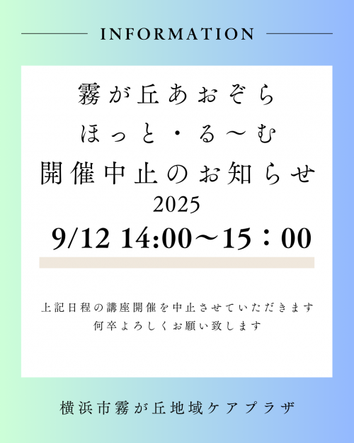 2025.09.23 【横浜市霧が丘地域ケアプラザ】小学生がご家族で展示を見に来てくれました♪ お知らせ 2025.09.22 【横浜市霧が丘地域ケアプラザ】令和7年10月横浜市霧が丘地域ケアプラザ開館時間のお知らせ お知らせ 2025.09.20 【横浜市霧が丘地域ケアプラザ】ケアプラザ通信10月号発行のお知らせ♪ お知らせ 2025.09.19 【横浜市霧が丘地域ケアプラザ】『祝 敬老の日~霧が丘の子どもたちからのメッセージ~』の展示が始まりました! お知らせ 2025.09.19 【横浜市霧が丘地域ケアプラザ】世界遺産を学ぼう!を開催しました♪ 活動報告 2025.09.19 【横浜市霧が丘地域ケアプラザ】9月事業カレンダーができました! お知らせ 2025.09.18 【横浜市霧が丘地域ケアプラザ】「もくもくひろば」9月24日より受付開始☆ お知らせ 2025.09.11 【横浜市霧が丘地域ケアプラザ】9/12「霧が丘あおぞらほっと・る~む」は開催中止いたします。 お知らせ 2025.09.11 【横浜市霧が丘地域ケアプラザ】9/15「まちともカフェ」は開催中止いたします。 お知らせ 2025.09.11 【横浜市霧が丘地域ケアプラザ】今月のスケッチ水彩画のモチーフも盛りだくさん! 活動報告 2025.09.11 【横浜市霧が丘地域ケアプラザ】親子でLet's Enjoy Englishを開催しました♪ 活動報告 2025.09.11 【横浜市霧が丘地域ケアプラザ】10月からのぬりえアート参加者募集スタート! お知らせ 2025.09.11 【横浜市霧が丘地域ケアプラザ】10月からのスケッチ水彩画参加者募集スタート! お知らせ 2025.09.08 【横浜市霧が丘地域ケアプラザ】まちともカフェでネイル体験♡ 活動報告 2025.09.08 【横浜市霧が丘地域ケアプラザ】親子deヨガクラス9月11日より受付開始♪ お知らせ 1 2 3 4 … 34