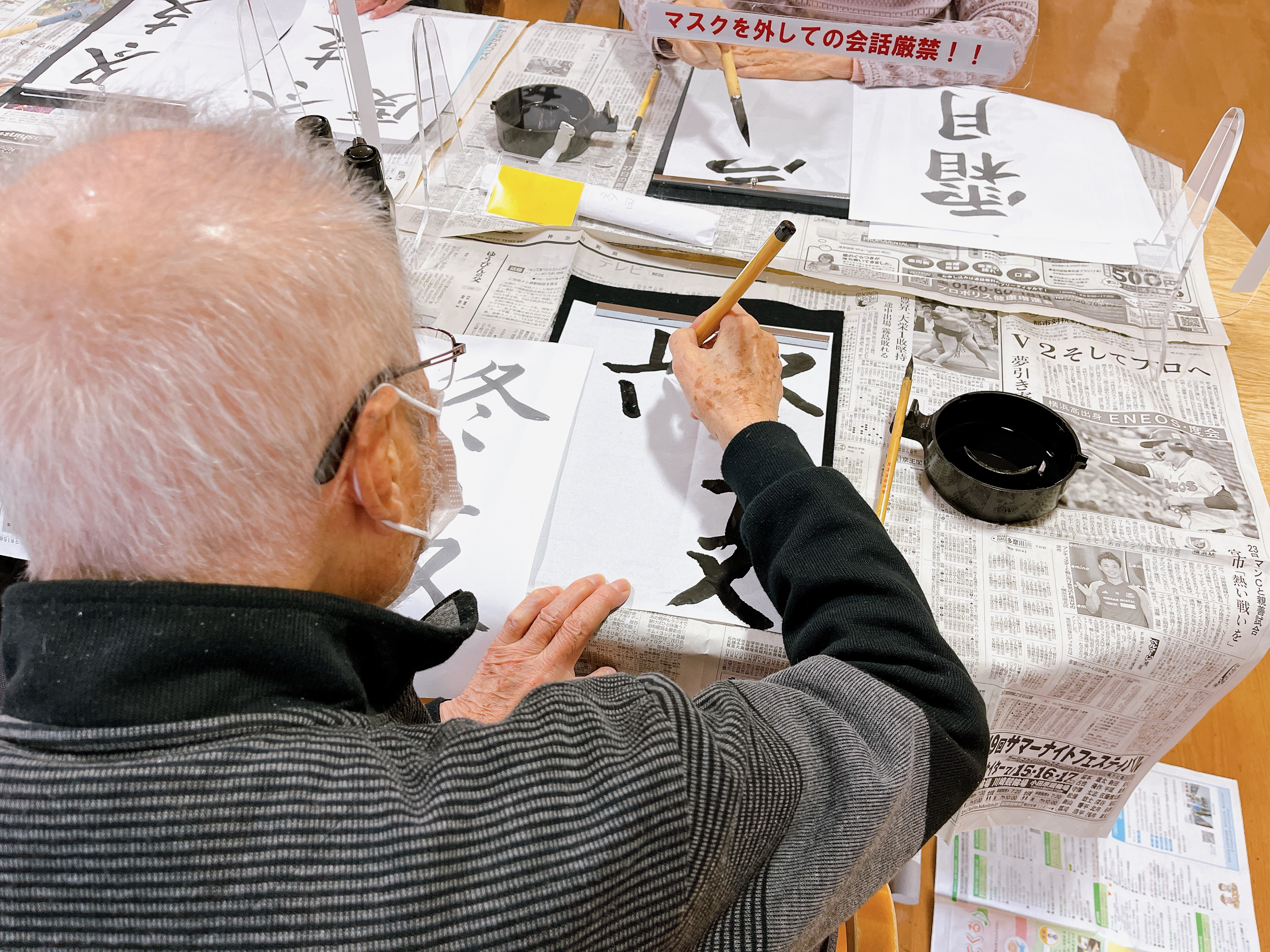 皆様とにかくお上手♪ぐんぐん上達して朱墨を入れるのがもったいない!次回の書道も楽しみです(*^-^*)