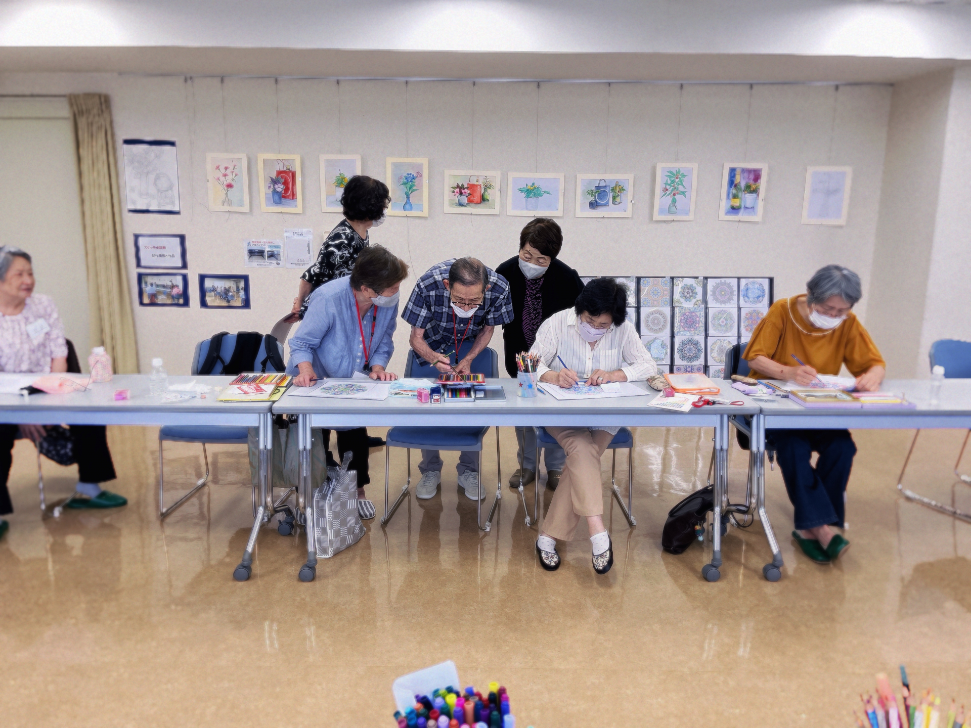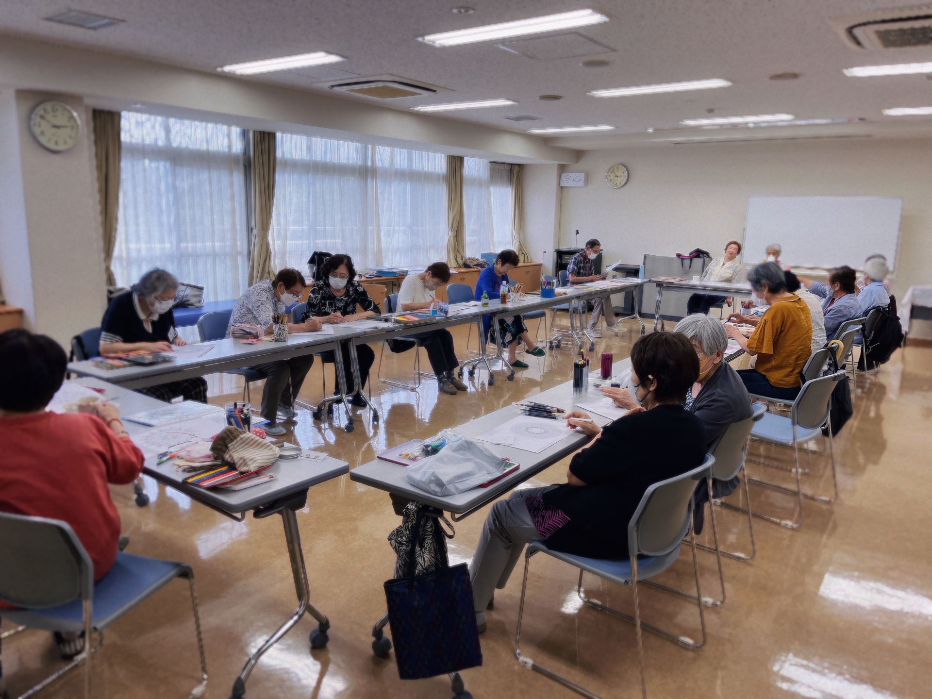 ぬりえアートは、まんだらぬりえを楽しむ講座ですが、それだけではなく、みんなの作品を展示したり、この塗り方いいね、どうやって塗っていったの?など、お互いの良いところをみておしゃべりもたくさんしています(#^.^#)