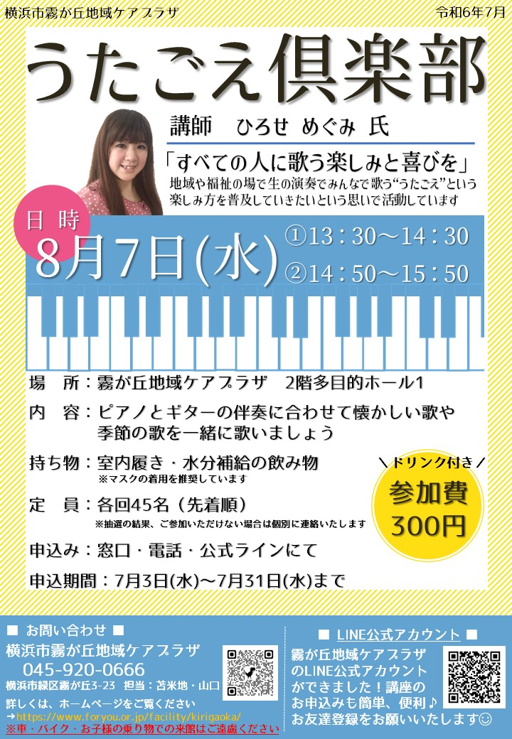 暑い夏も、歌って笑って、楽しく乗り切りましょう!!