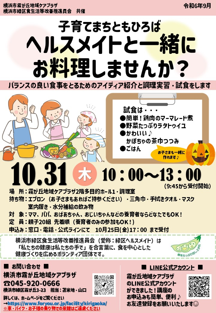 【横浜市霧が丘地域ケアプラザ】子育てまちともひろばで「ヘルスメイトと一緒にお料理しませんか?」