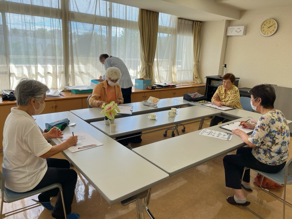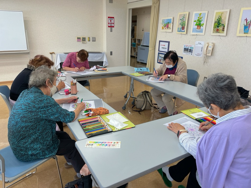 第一月曜日のまちともカフェではスケッチ水彩画も行っており本日は新しく参加した方がいたので、『絵の具は透明水彩を使っているのよ』など使用している道具や題材のことなどでお話が盛り上がっていました♪