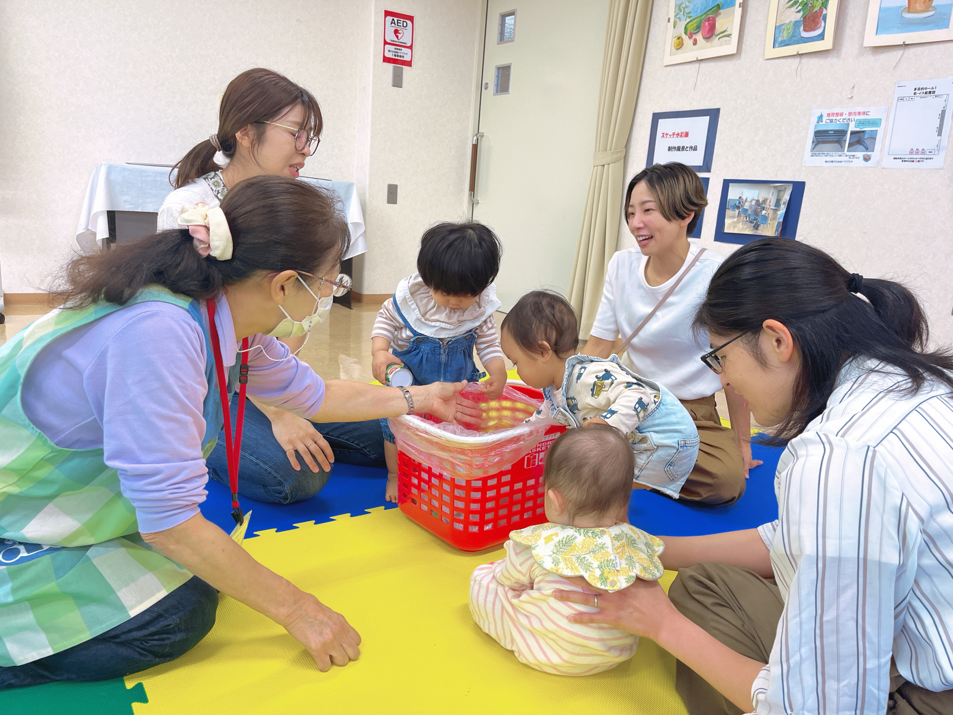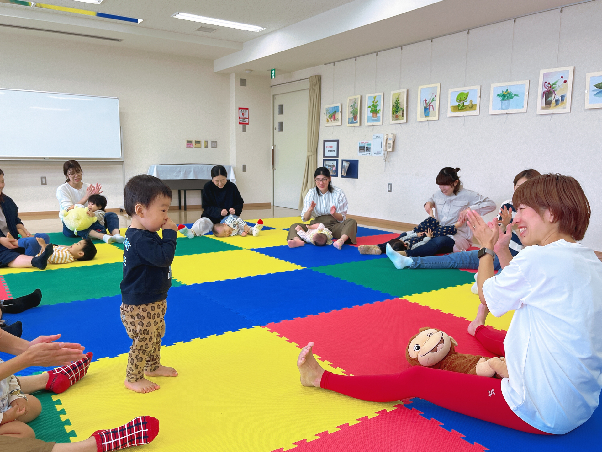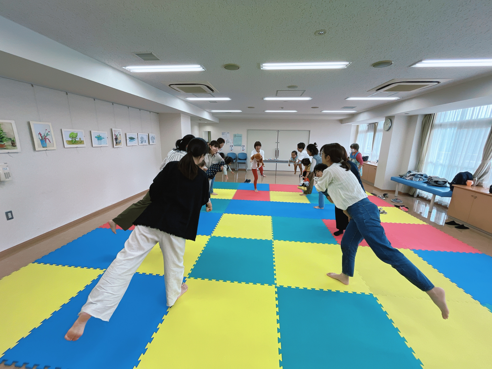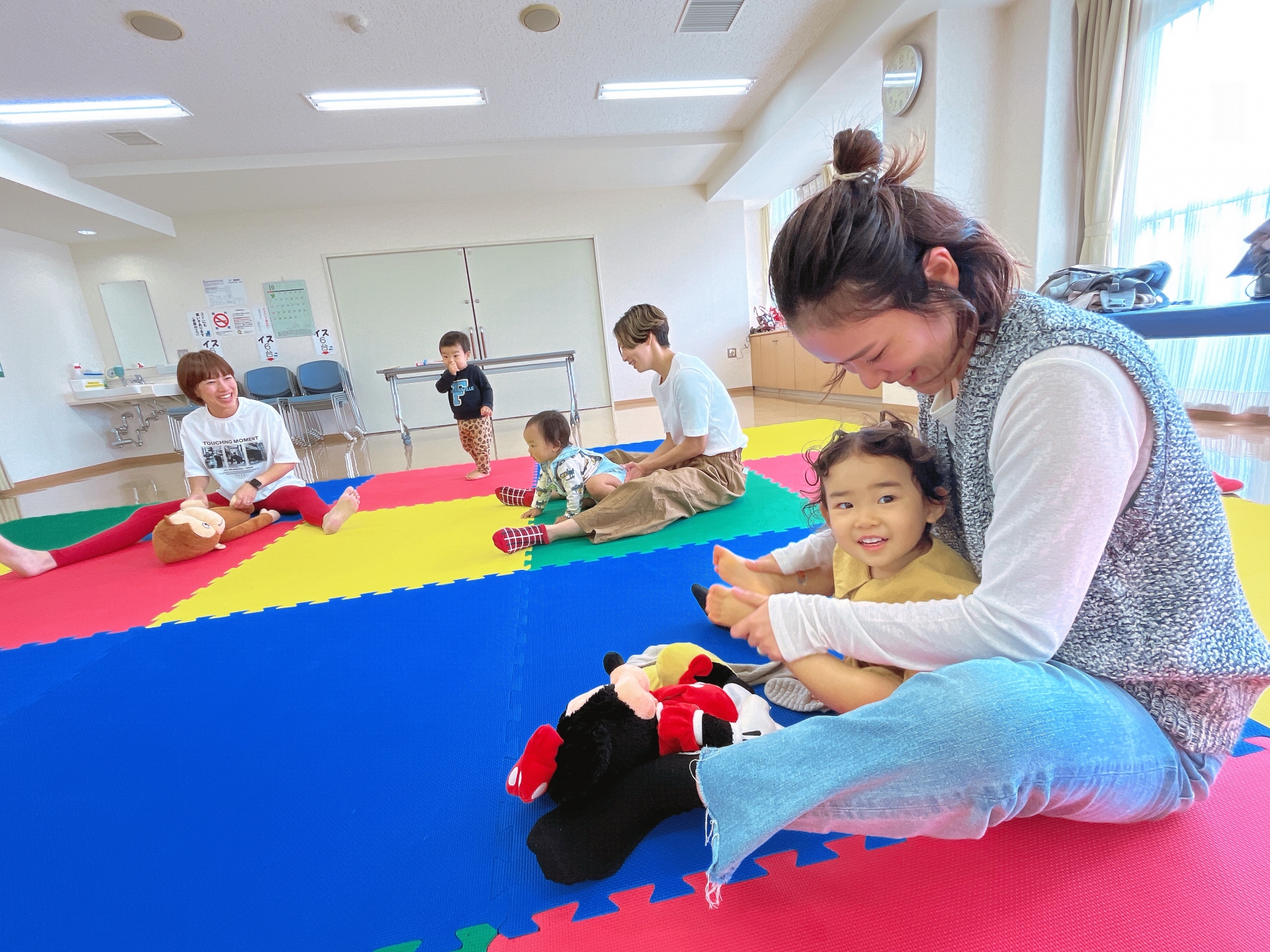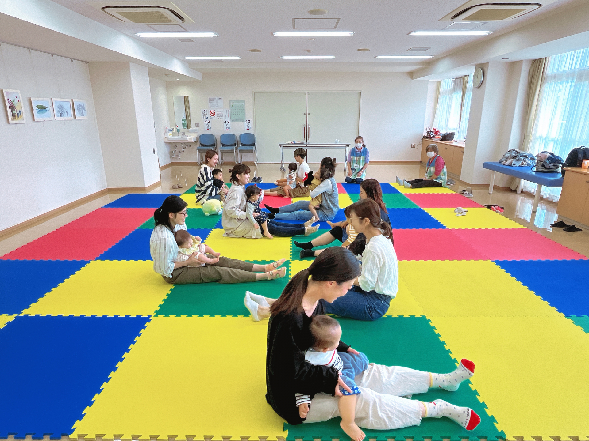 初めは自由遊びタイムでは、お子さまはボールプールや滑り台で身体を動かして、ママたちはお子さまを見守りながら「衣替えしたら子供の服の袖がつんつるてん!サイズアウトが早い~。」「旅行の時、離乳食ってどうしていた?」など、今話したい聞きたい話題で交流を深めていました!(^^)!