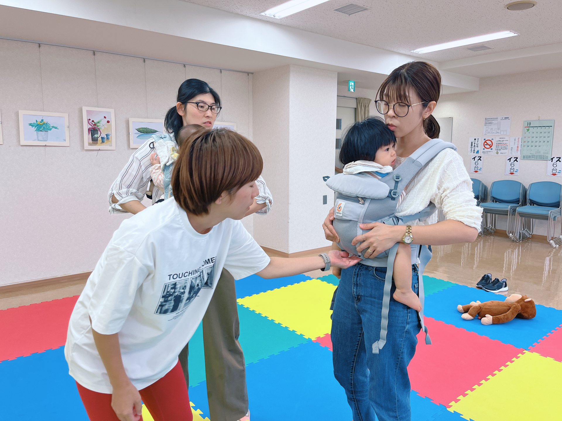 そして今日は最後に「抱っこ紐講習」を受講したFumiko先生が、抱っこ紐で気になることがある方の相談に乗ってくださいました!腰、方、脇のベルトの正しい位置に調節すると、『いつもと肩や腰の負担が全然違う!!!』と驚いていたり、『抱っこ紐を購入するときにつけ方の説明は受けたけど、大きくなってからの方が負担が多いから今こうしてレクチャーしてもらえて良かったです!』との喜びの声が聞けました(^^♪