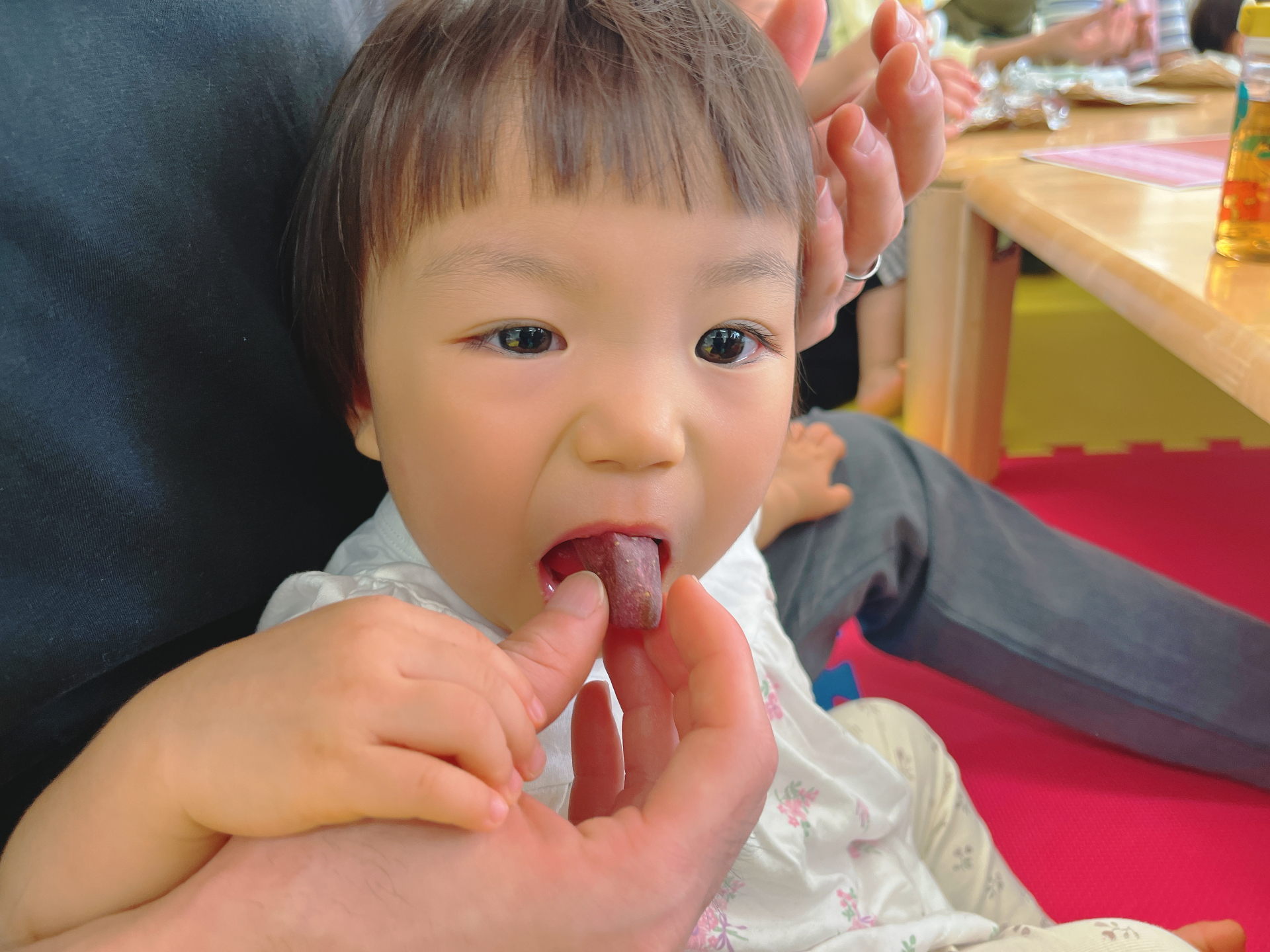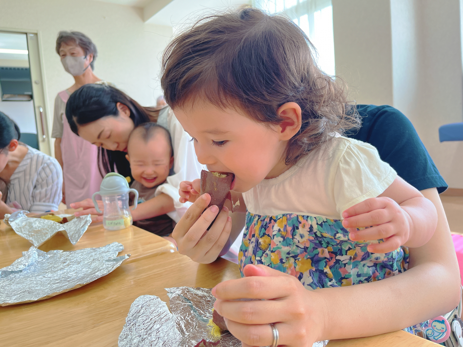 「おいしい!」「あまいね♪」お子さまたちは夢中でお芋をほおばっていました!