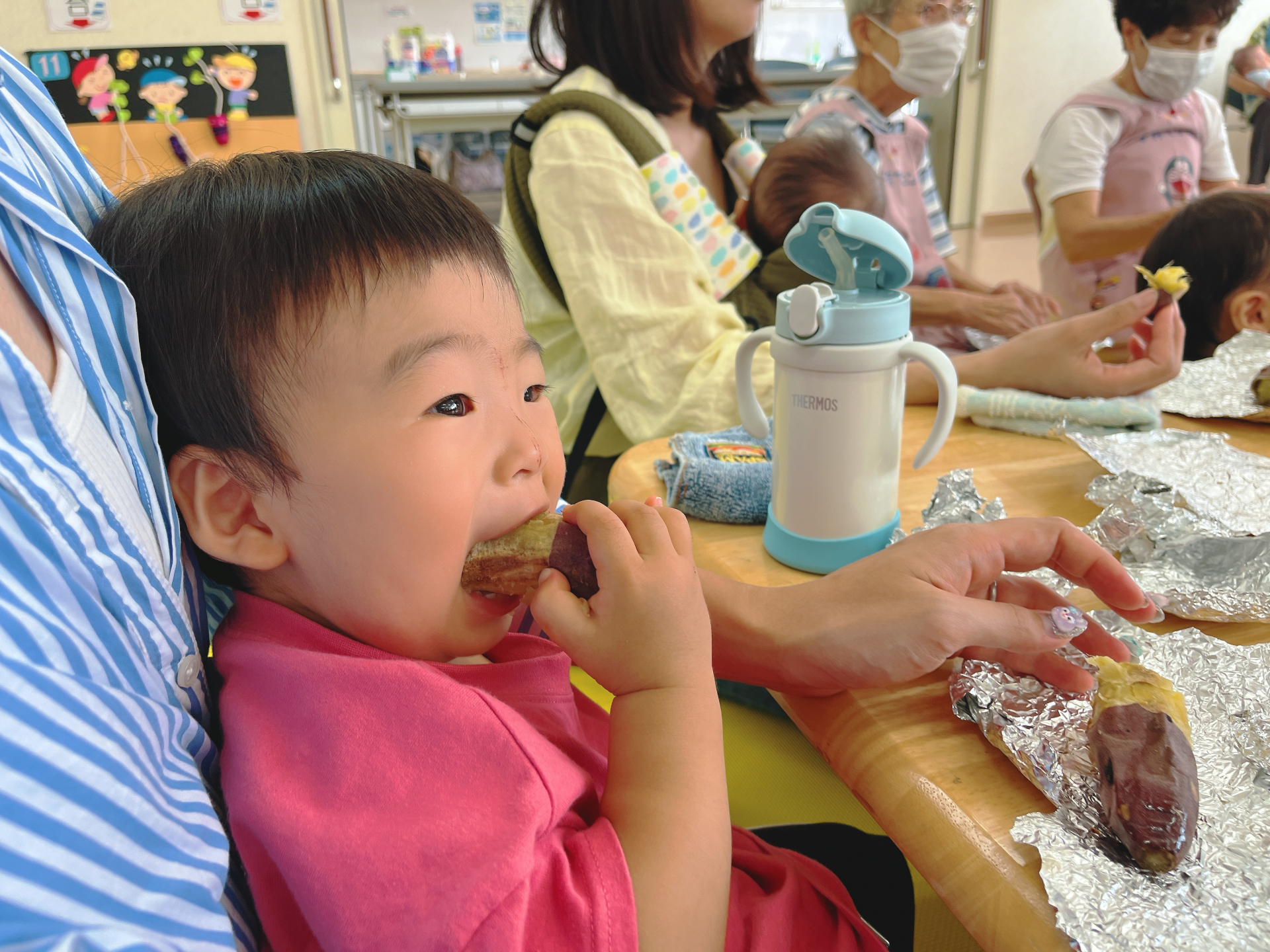 そして最後に本日のメインイベント!!子育てサロンの皆さんにご協力していただき、焼き芋を食べました!