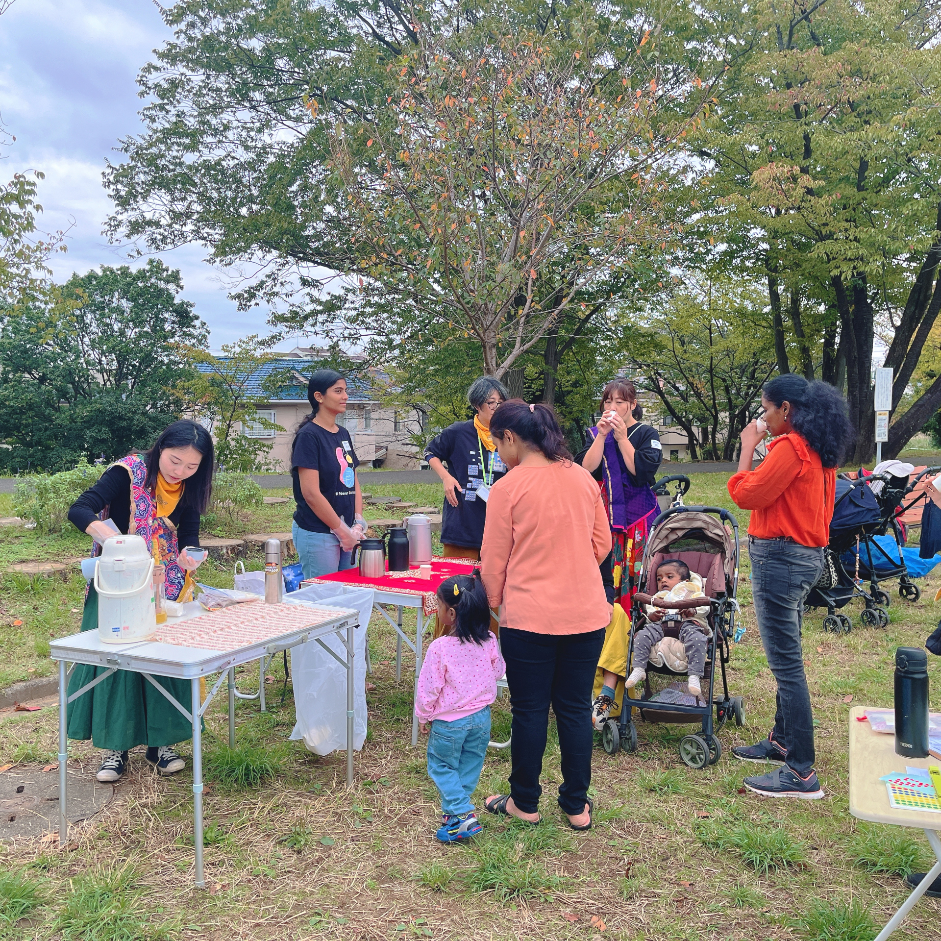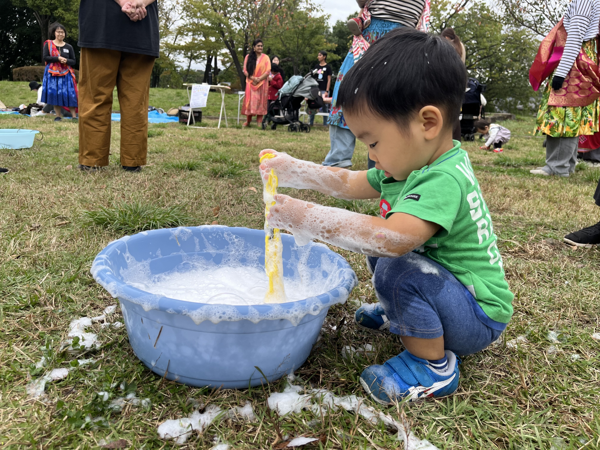 準備体操の後は、シャボン玉をしたり、ぬりえをしたり、インドで生まれた飲み物、“チャイ”を飲みながら、交流できました!