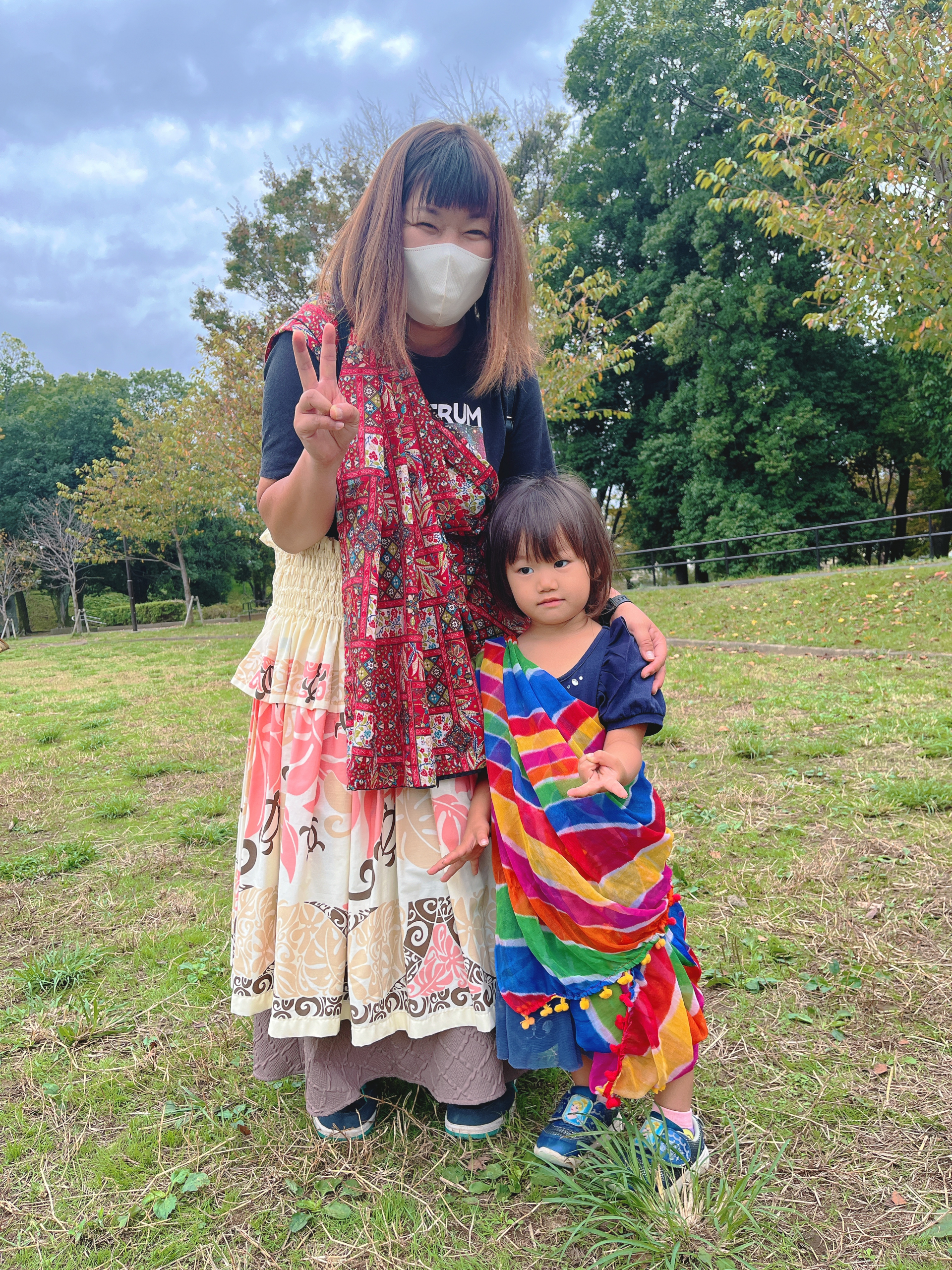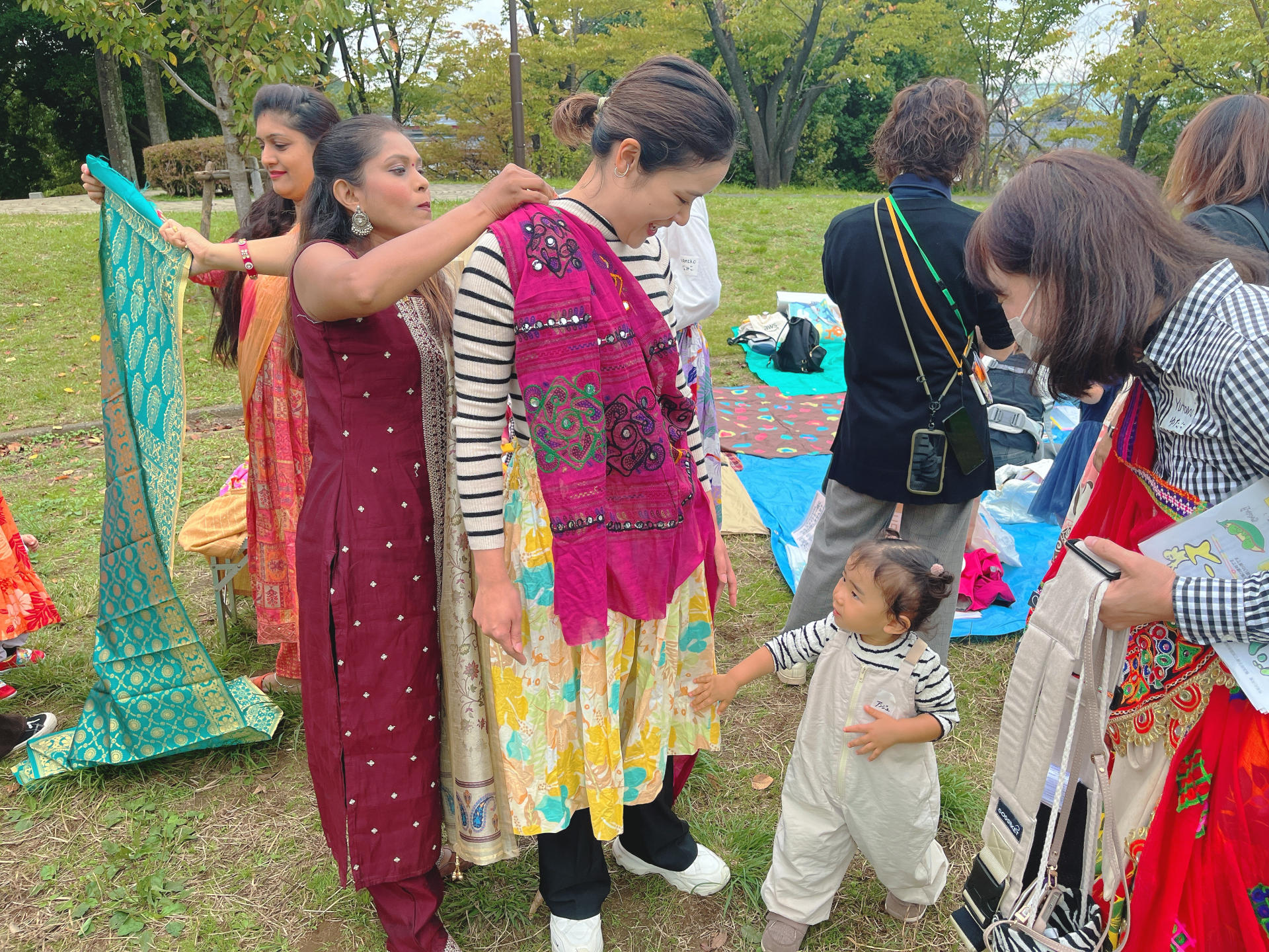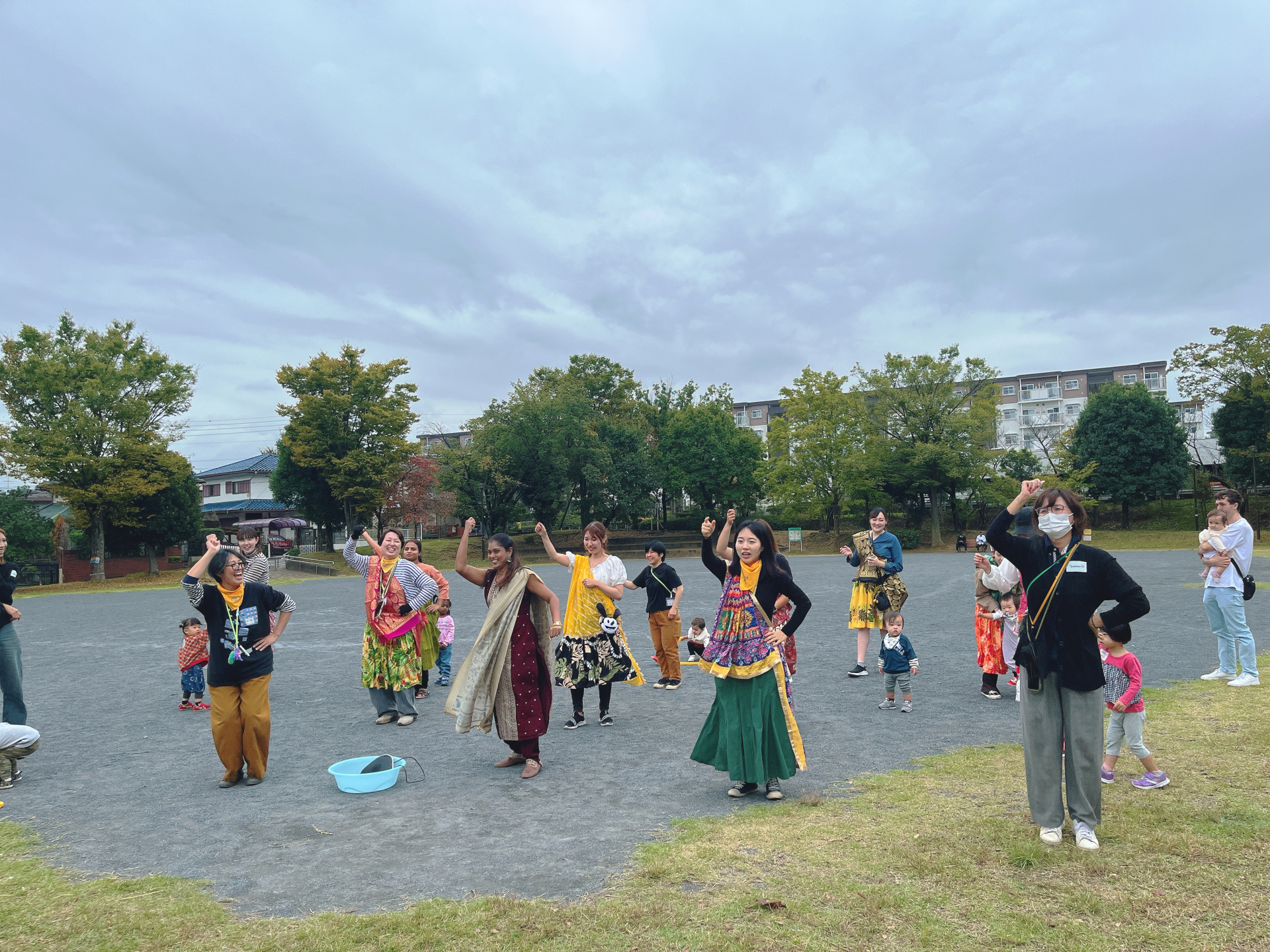 インドのダンスを教えてくれる先生が来て衣装を着てみんなでダンスをしよう♪衣装を先生が選んで着付けをしてくれます!あまりない体験に、ママもこどもも嬉しそう(*^-^*)