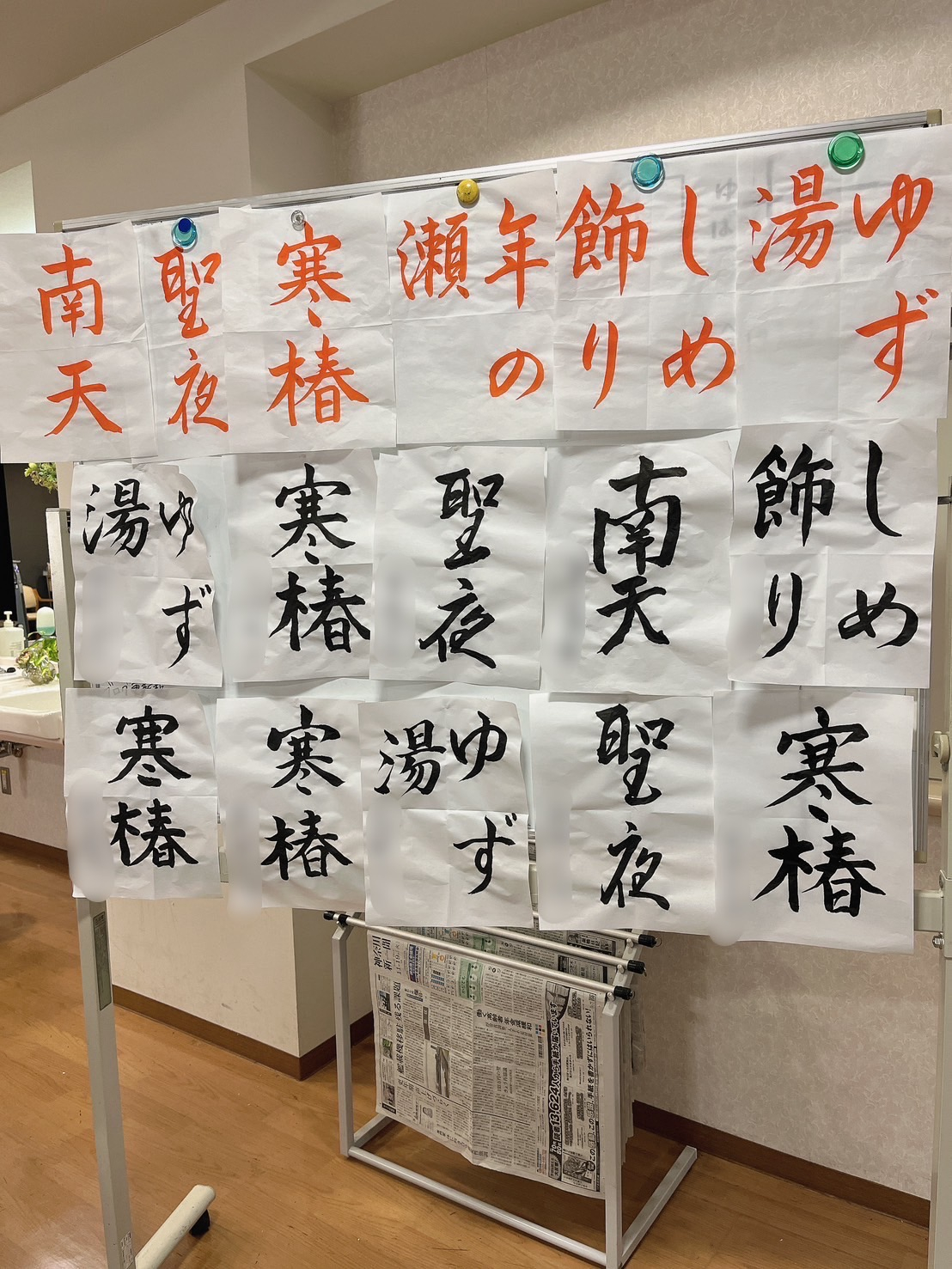「あっという間に今年も終わりだね~」とお話をしながら、季節を感じながらの書道!季節を味わえるようなお手本を考えています。今度はリクエストを募集してみよう♪今回も皆さんの素敵な作品が出来上がりました!