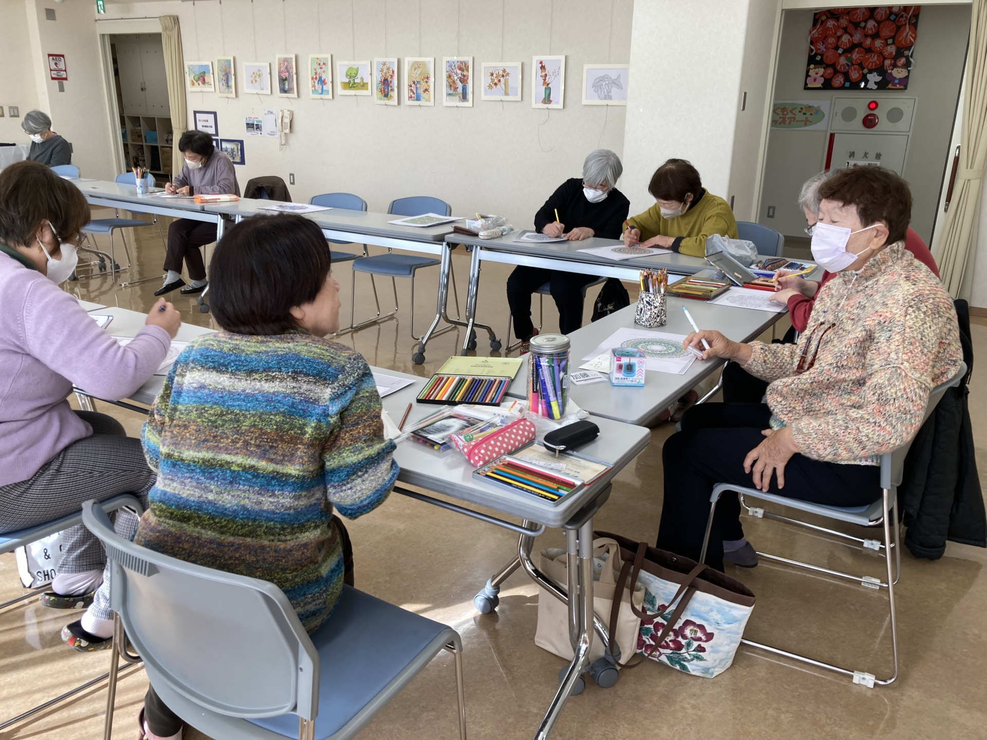参加者の皆さんはリラックスして塗り絵の世界に浸っていらっしゃいました。