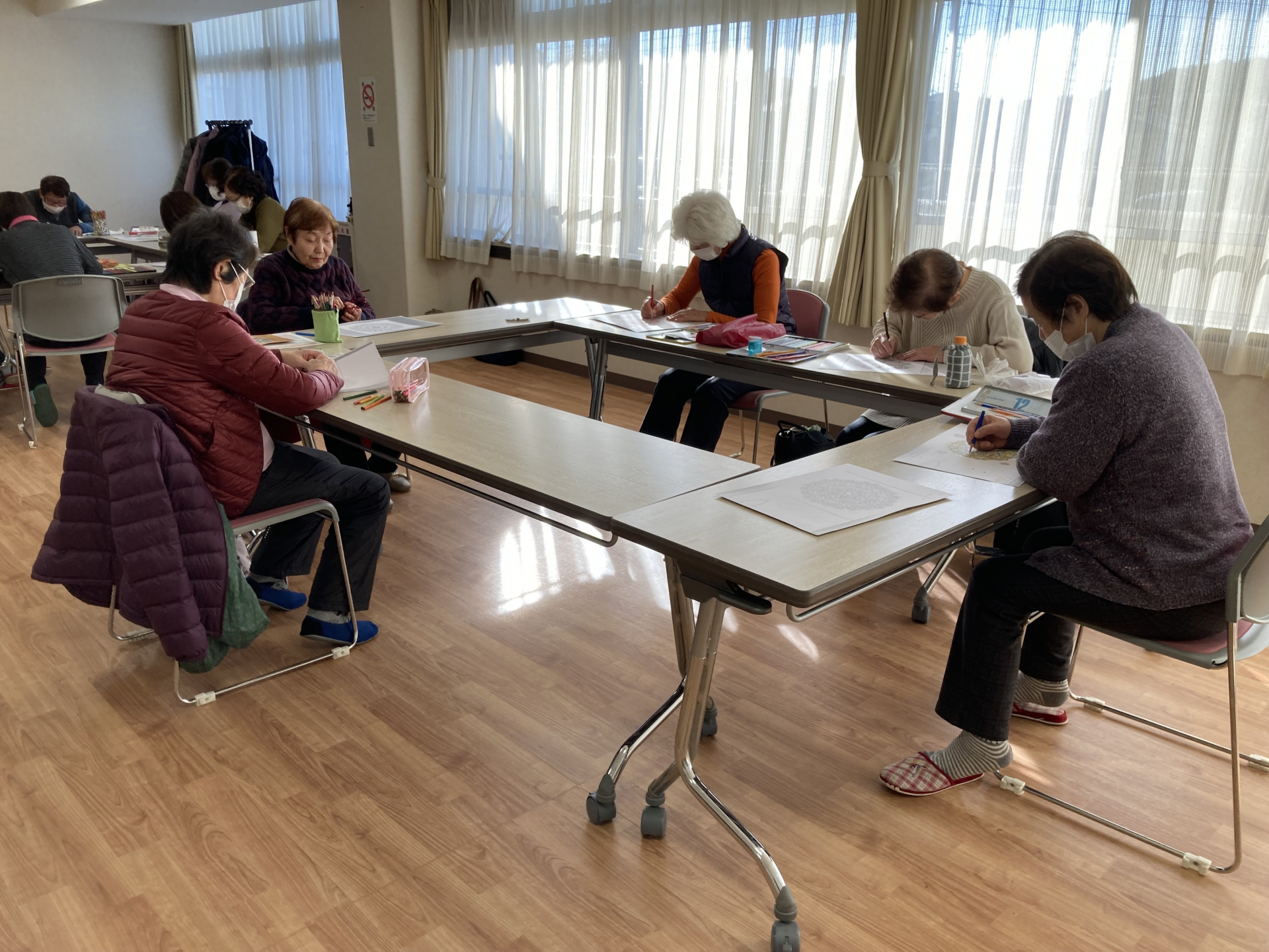 こちらは塗り絵に集中していらっしゃいますね。