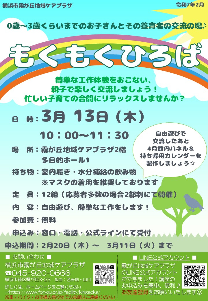 【横浜市霧が丘地域ケアプラザ】もくもくひろば受付開始!