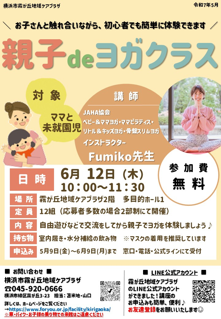 【霧が丘地域ケアプラザ】親子deヨガクラス受付中♪