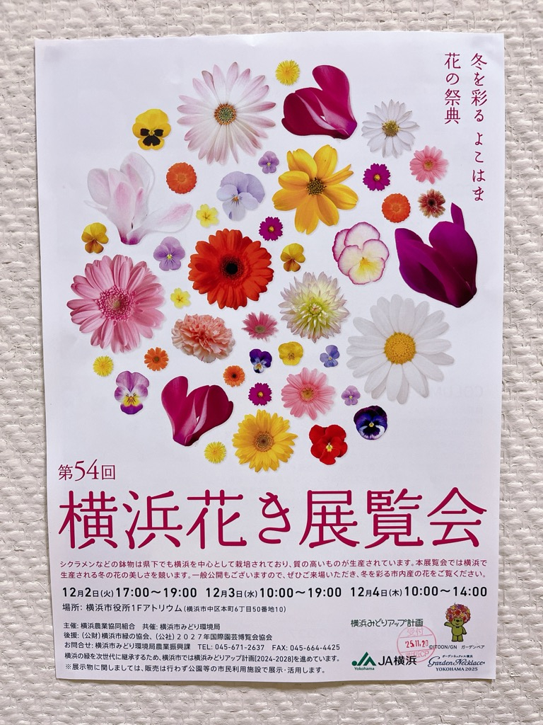 横浜市内の花の生産者が丹精込めて育てた、冬の訪れを華やかに彩る色とりどりの花々を集め、美しさと技術を競い合う歴史ある展覧会「第54回横浜花き展覧会」が横浜市庁舎で開催します!